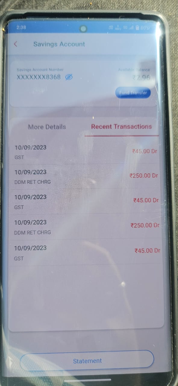 Sir I am using the central bank since 2019 they are debited around 847 from my account please make some favor for me. I want my money back and after that there is not a single transaction that is showing everytime it is showing 2.96 my account number is 3806358368