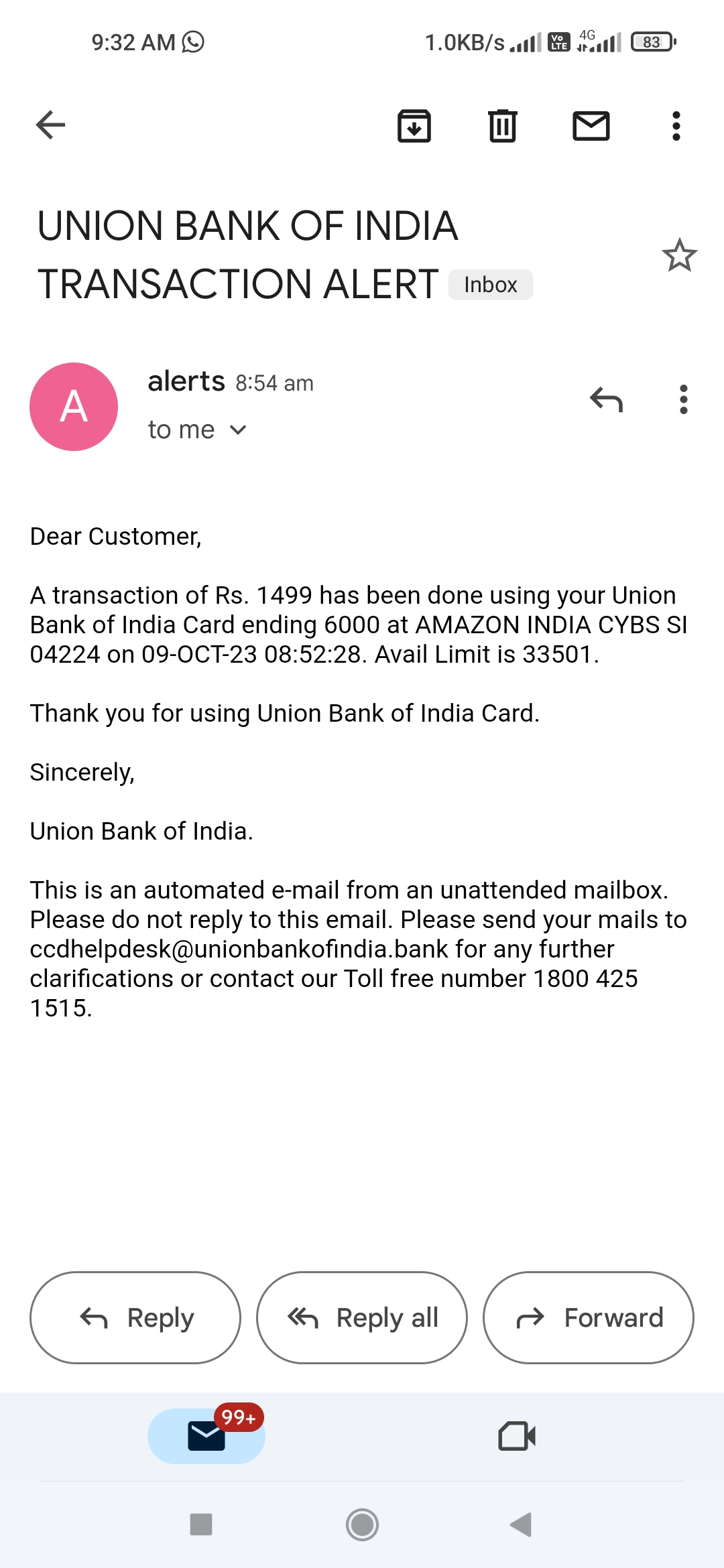AMAZON INDIA CYBS SI charged my union Bank of india credit card with 1499 rs without OTP AMAZON INDIA CYBS SI Unauthorised charges was last modified : October 9th 2023 by consumer court
