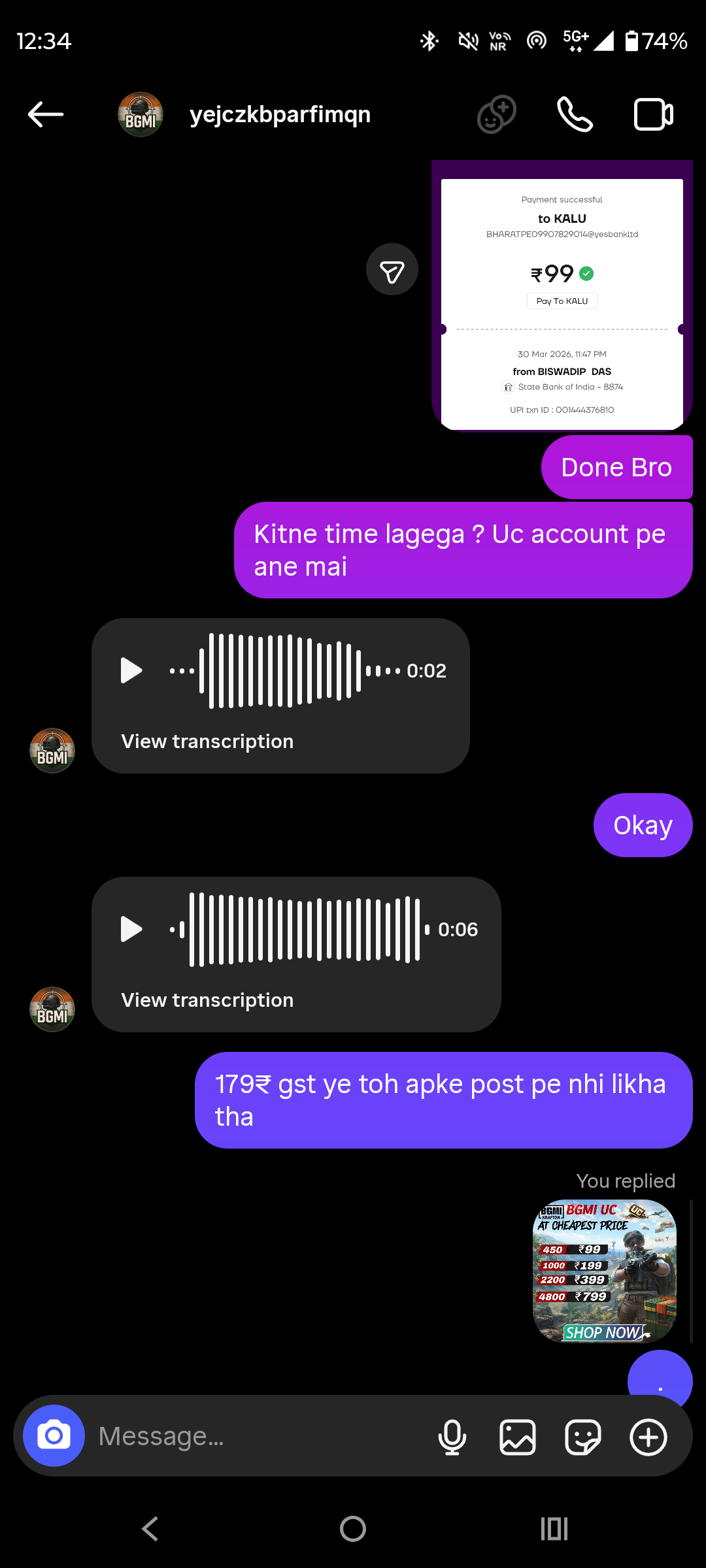 Hidden Charges & Extortion: After I scanned their provided BharatPe QR code and successfully paid the ₹99, the seller withheld the promised digital goods. Instead, they suddenly demanded an additional ₹179, claiming it was for “GST”—a fee that was never mentioned in their original posts or before the transaction.