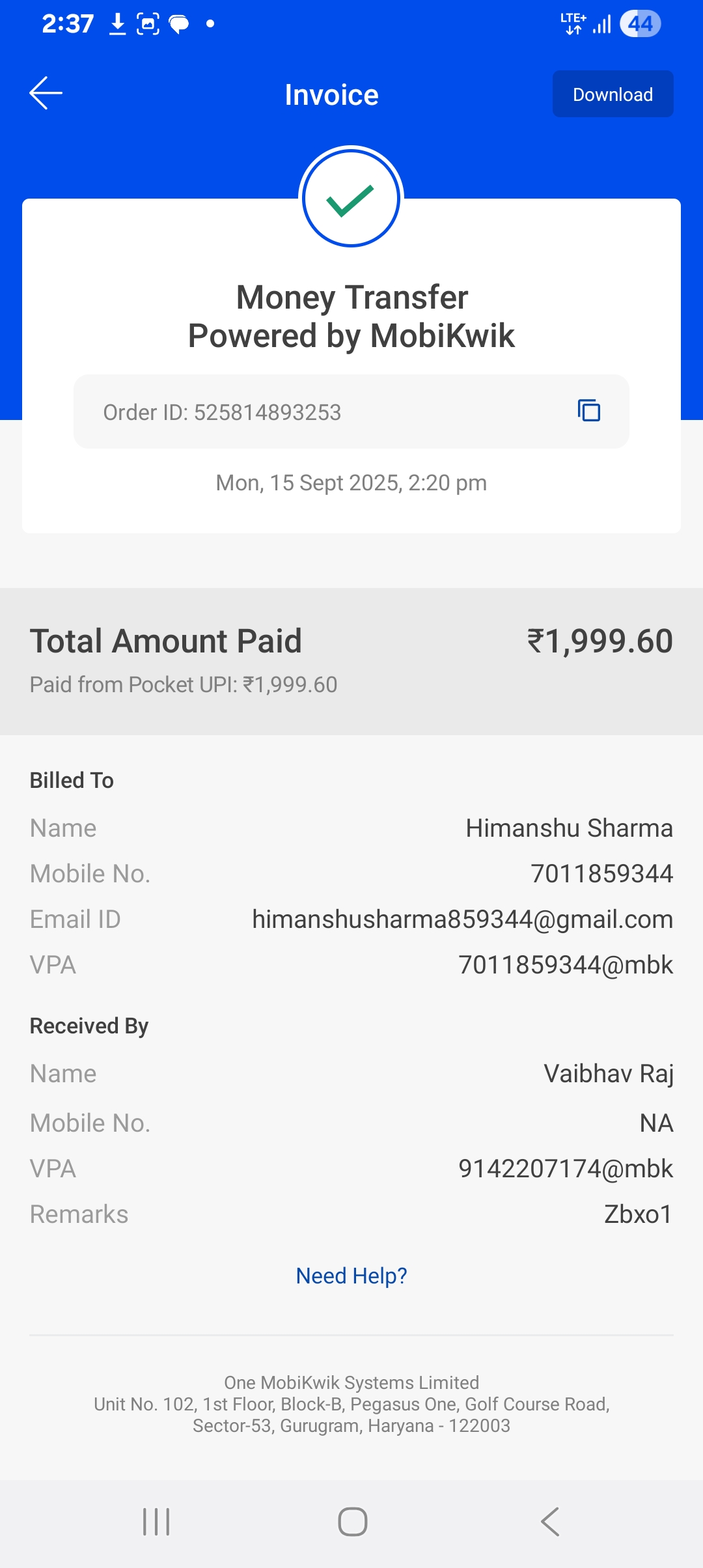 My utr- 525814894253