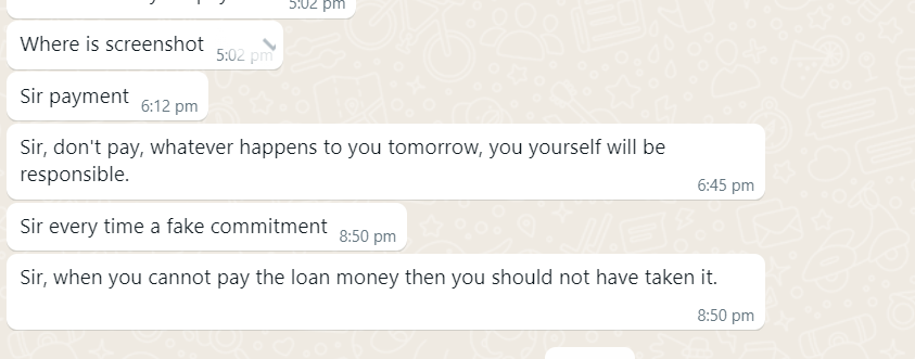 i have taken loan on the above said date, while taking the loan i was not aware that entire loan needs to be paid in single payment. They have been blackmailing of reaching office and home address if not paid. Recently a female Akansha Azad started calling almost 100 calls in 15 mins or else she threatens that “you don’t know what will happen with you” Her email address : akanksha.azad@bharatloan.com