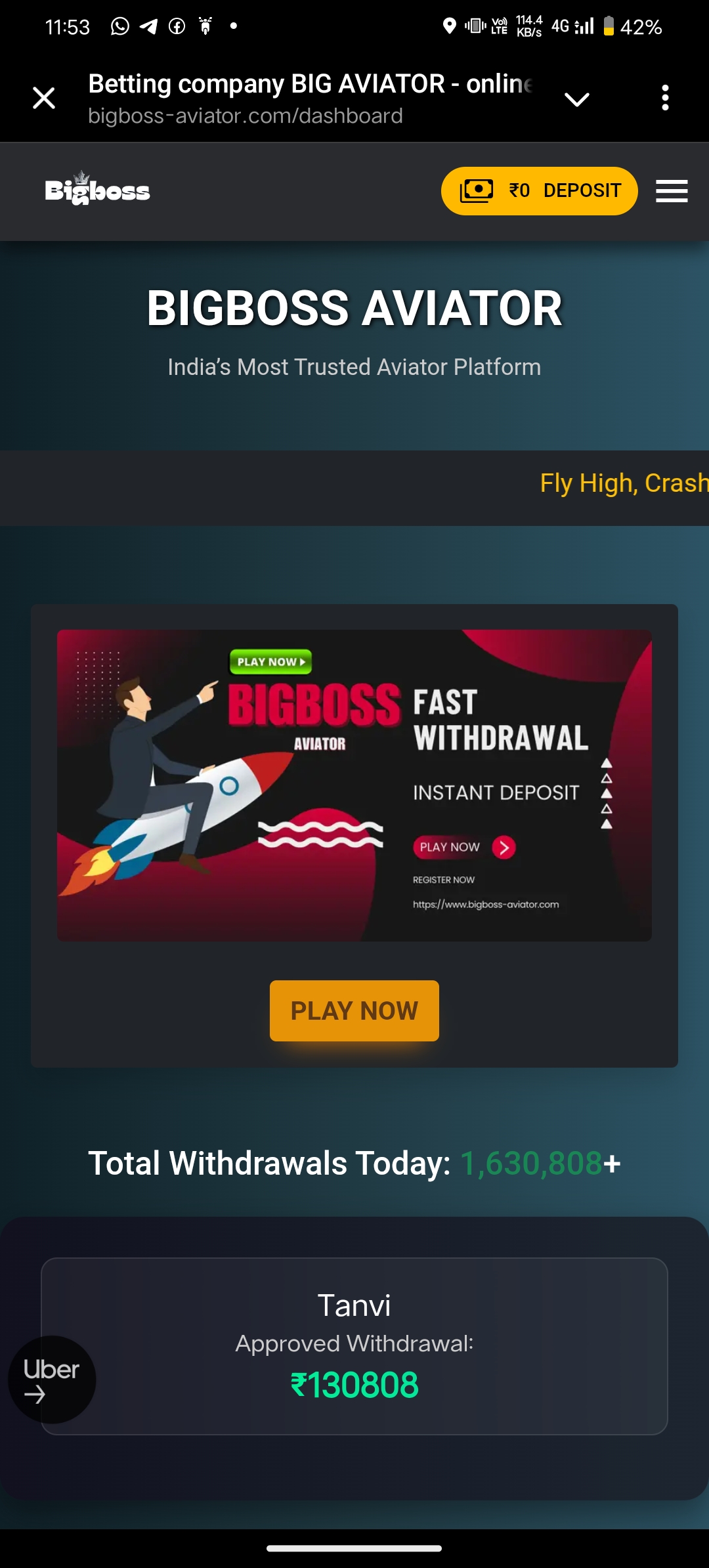 Bigboss aviator game deposit money was not credit in my game account, please solve the problem return my amount