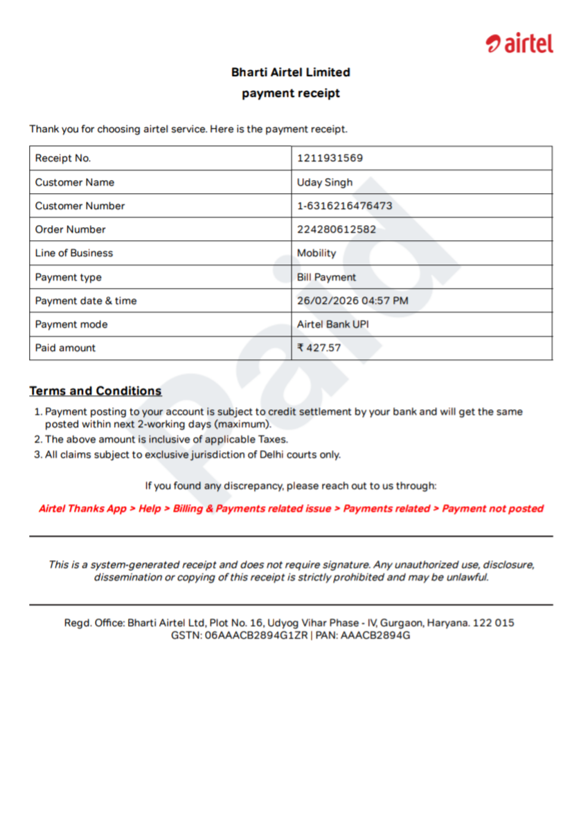 Dear Sir I’m Old Operator bill paid Yesterday But Not Updated Due to My Out Going Calling Stopped pls Update