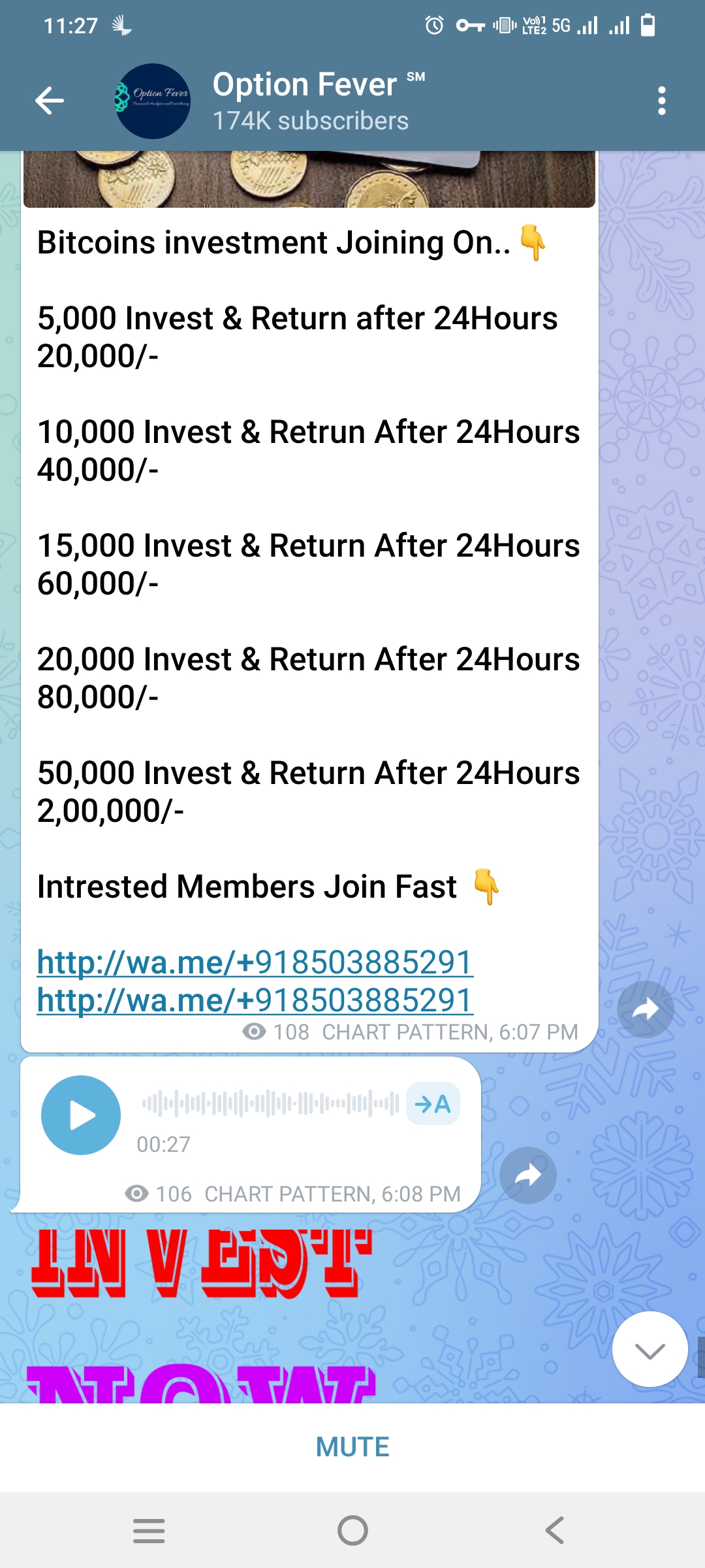 Telegram par Trading Guide and Option Fever k name se Chanel hai inka 5000 ka 20000 de rhe hai 24 hrs me kark logo k sath fruad karta hai phone pe fargi sample screenshot short send kark logo ka Paisa leke wapas nahi karta