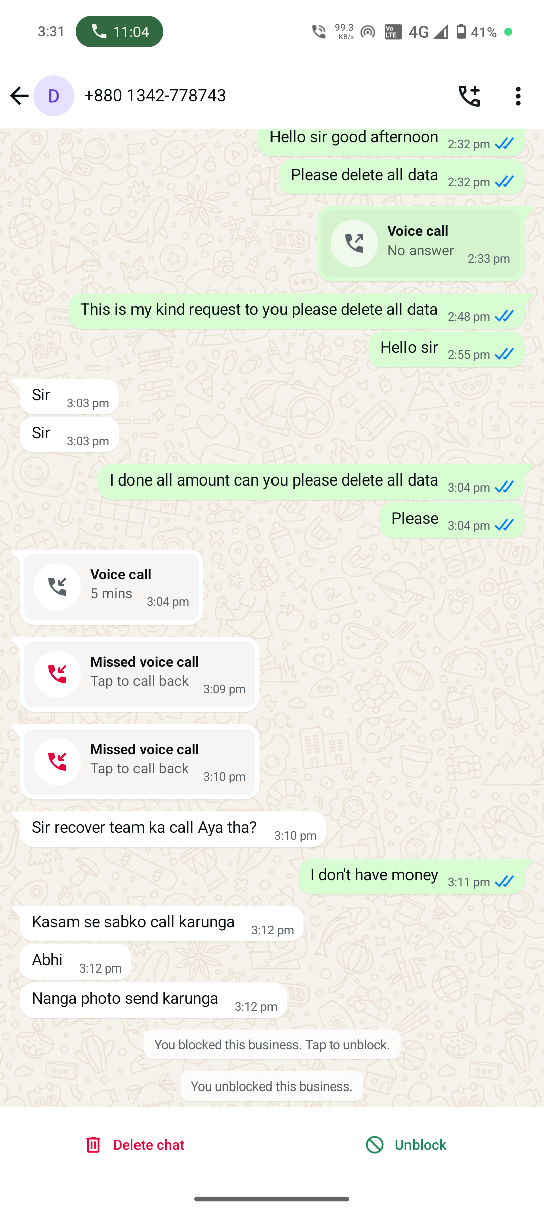 | Name(s) of companies complained against | Whatsapp call |