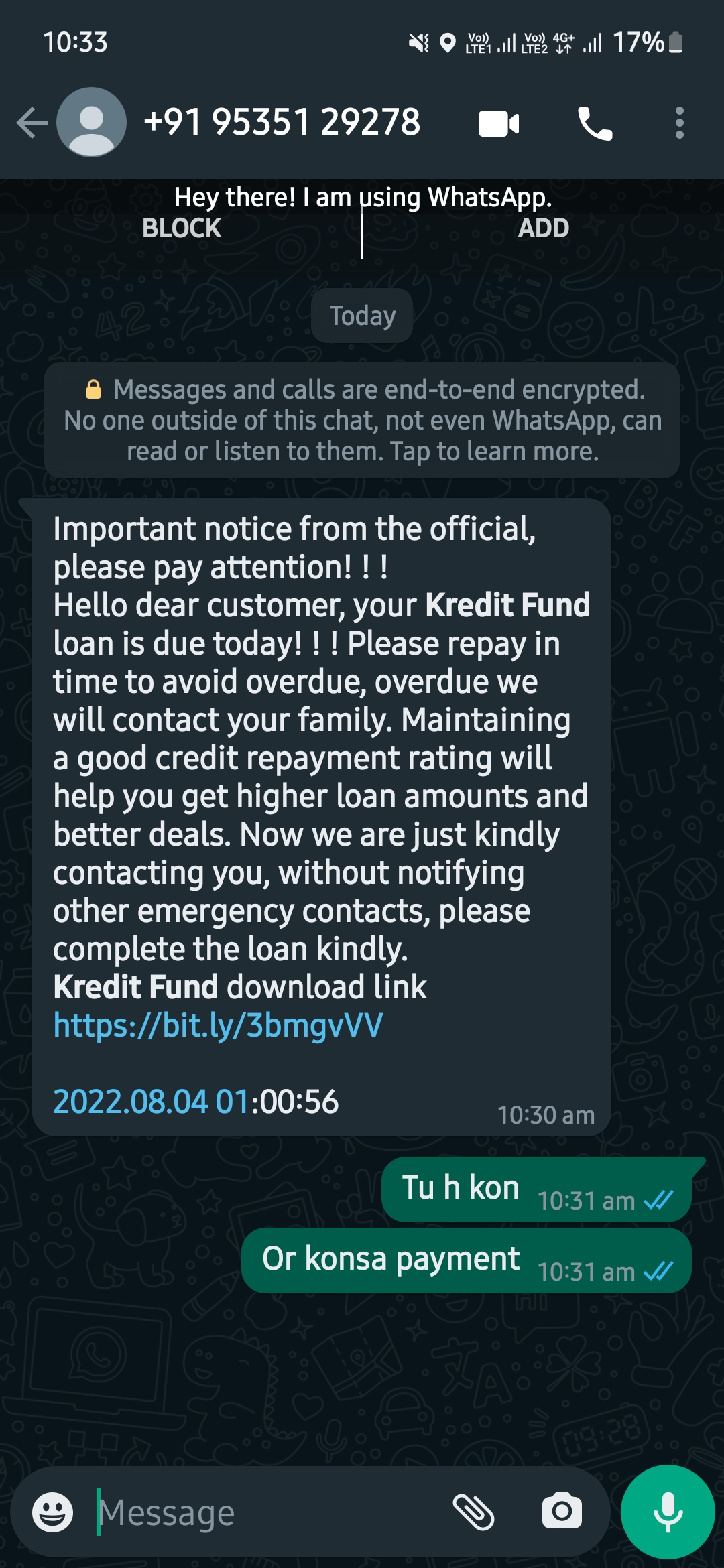 Someone is texting on WhatsApp and blackmailing to pay amount loan which I have not taken b