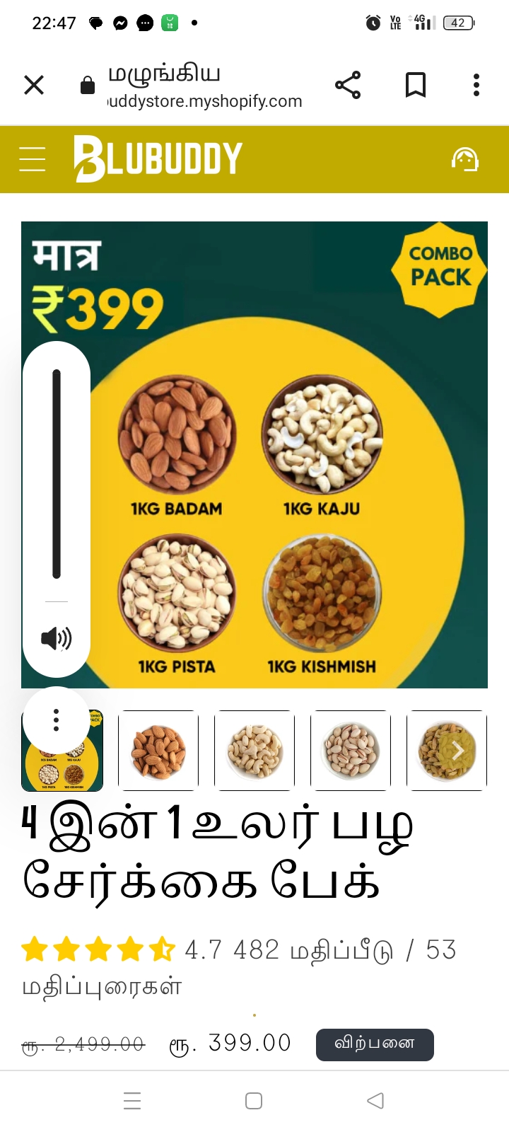 Google online இணையதளம் வழியாக Blubuddy இந்த நிறுவனத்தில் உலர் பழ திராட்சை போரின் 4.in1 முந்திரி பாதாம், பிஸ்தா உணவு பொருள் ஆர்டர் செய்தேன் இதற்கான கட்டண தொகை பேடிஎம் மூலம் ரூபாய் Hey, I paid ₹391.63 to Nikhil using paytm. கட்டியுள்ளேன் ஆனால் எனக்கு ஆர்டர் வரவில்லை பார்சலிஇன் ஐடி நம்பர் ஆர்டர் எண் வழங்கப்படவில்லை இந்த நிறுவனம் என்னை ஏமாற்றி விட்டது ஆடர் பதிவு செய்யும்போது பேடிஎம் கூகுள் பே போன் பே உள்ளிட்ட அனைத்து வசதிகளும் காட்டுகிறது ஆனால் டெலிவரி போது பணம் செலுத்தலாம் என்று காட்டவில்லை இந்த இடத்தில் எனக்கு சந்தேகம் ஏற்பட்டது இருந்தும் இந்த நிறுவனத்தில் சத்தான தரம் உயர்ந்த ஊட்டச்சத்து உடைய நல்ல தரமான உணவுப் பொருள் கிடைக்கும் என்று நம்பிக்கையில் பணத்தை இழந்து விட்டேன் நான் இழந்த பணத்தை மீண்டும் பெற்றுத்தர தாழ்மையுடன் வேண்டி பணிவுடன் கேட்டுக் கொள்கின்றேன் பேடிஎம் அக்கவுண்ட் டீடைல்ஸ் 19/06/2025 10.27 PM with upi reference number 385456995961