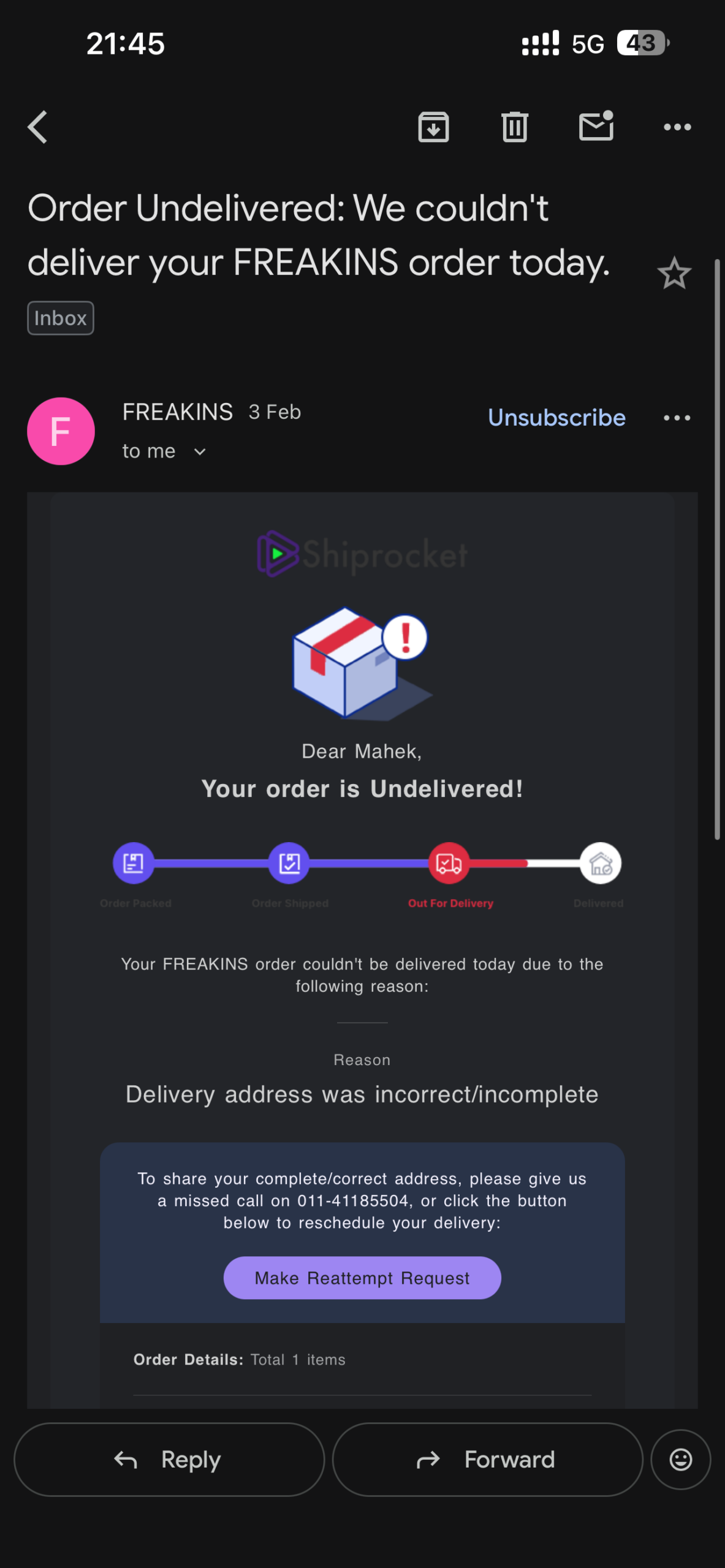 I have place an order on Freakins from their BOGO sale .. firstly we received the order. One was perfect and the another one was over sized so I raised a complaint to exchange it. They picked up the returnexchanged peace but never delivered the actual size I was ordered.. I did mails calls messages everything but they were never responded. It’s been more than 2 months I have never received the refund nor the return product. I would like to raise a complaint against them. Please do the needful