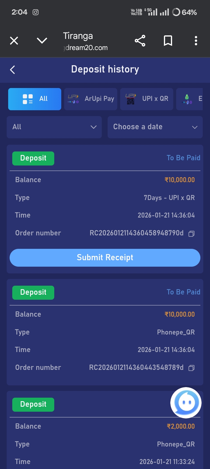 I had deposited Rs 10,000 in Tiranga but it did not come and the complaint filed is getting rejected 6-7 times.