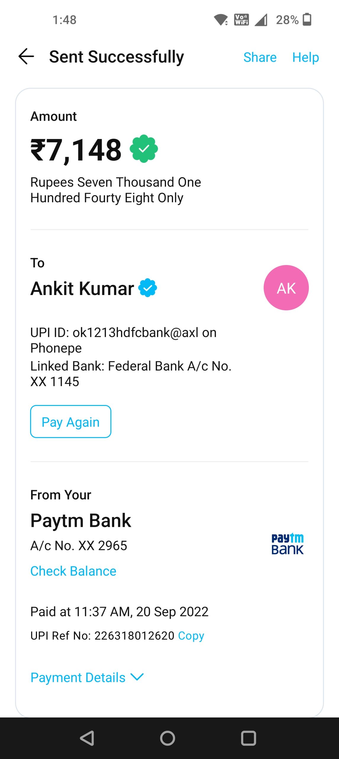20 September 2022 was my loan end date. In the morning Buddy Company recovery agent asked me to repay my loan at first I go through the Buddy Cash application for the payment 3852 for rollover, but application server down that’s why his agent asked me for the payment via a sms in WhatsApp and sending details to payment me after payment they asking more 7148 rupees for the payment. I paid it. After payment my loan not closed. 21 September 2022 one more agent asked me for the payment I told him all the matter and he asked me for the payment 1400 rupees for the time for investigation. After 1400 rupees payment he told me for the rollover payment 3852 rupees and told me my loan will close and I will refund my 1400/3852 rupees. But Today morning (27 September 2022) his company agent is asking me for the payment. Please help me sir
