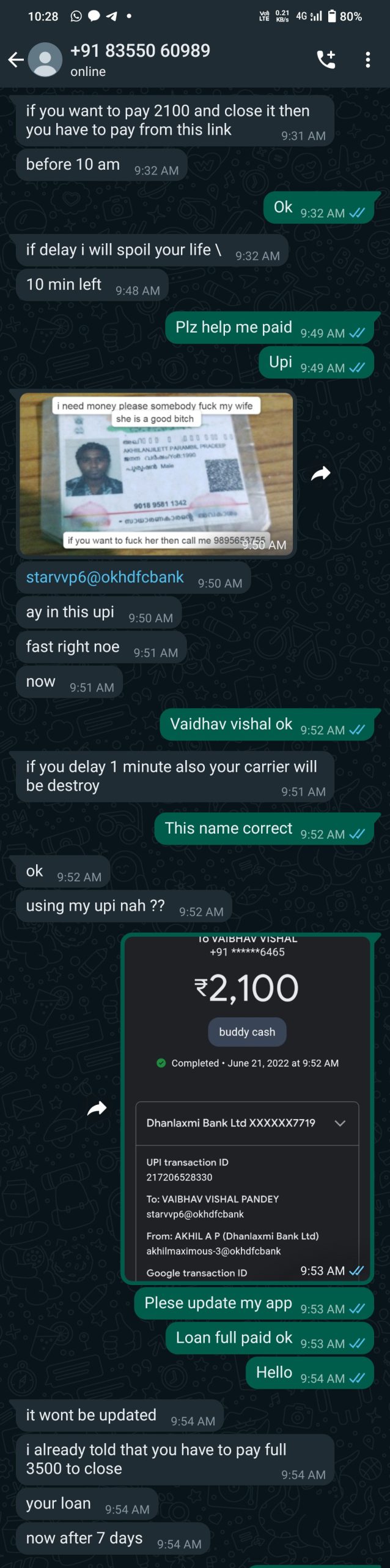 I applied for a loan but I did not get a loan credit and I repayed them twice and they still blackmailed me saying that I still have to pay.(buddy cash)
