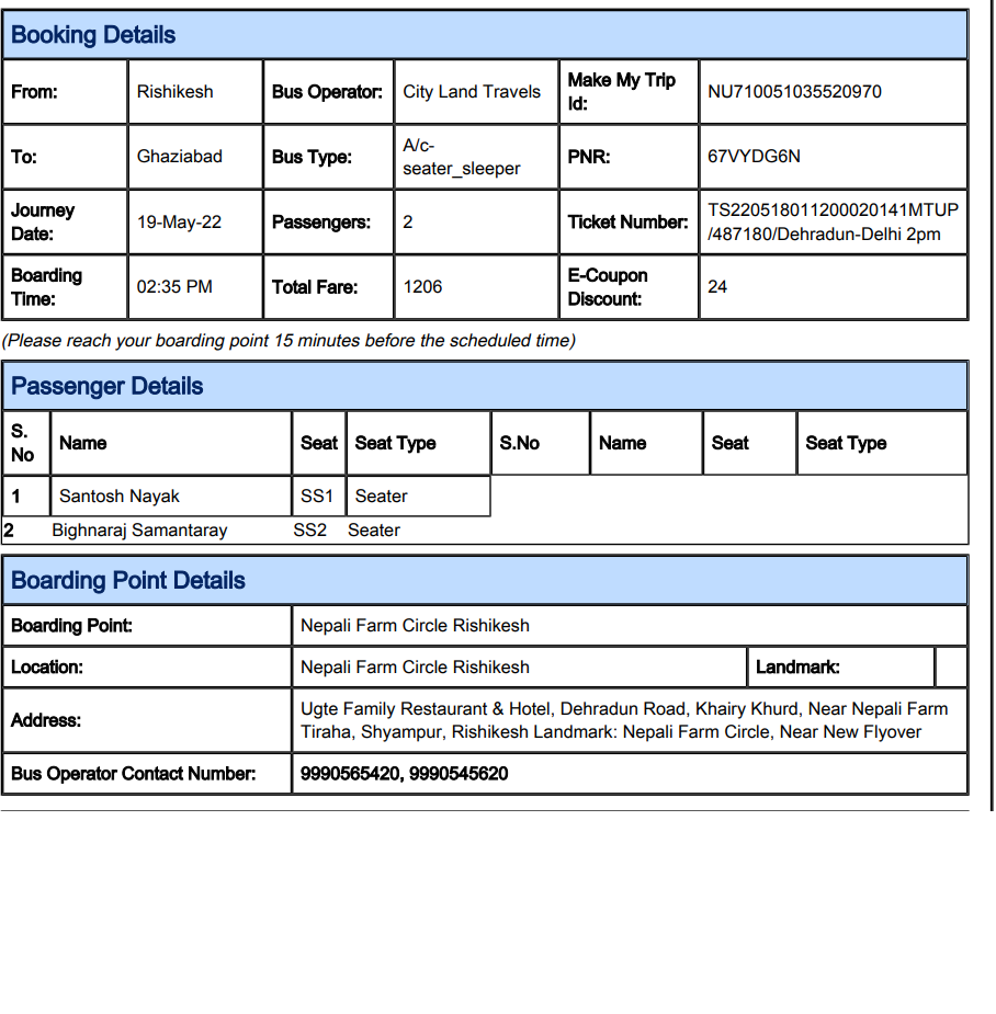 | Name(s) of companies complained against | bus operator: "City Land Travels", MakeMyTrip |