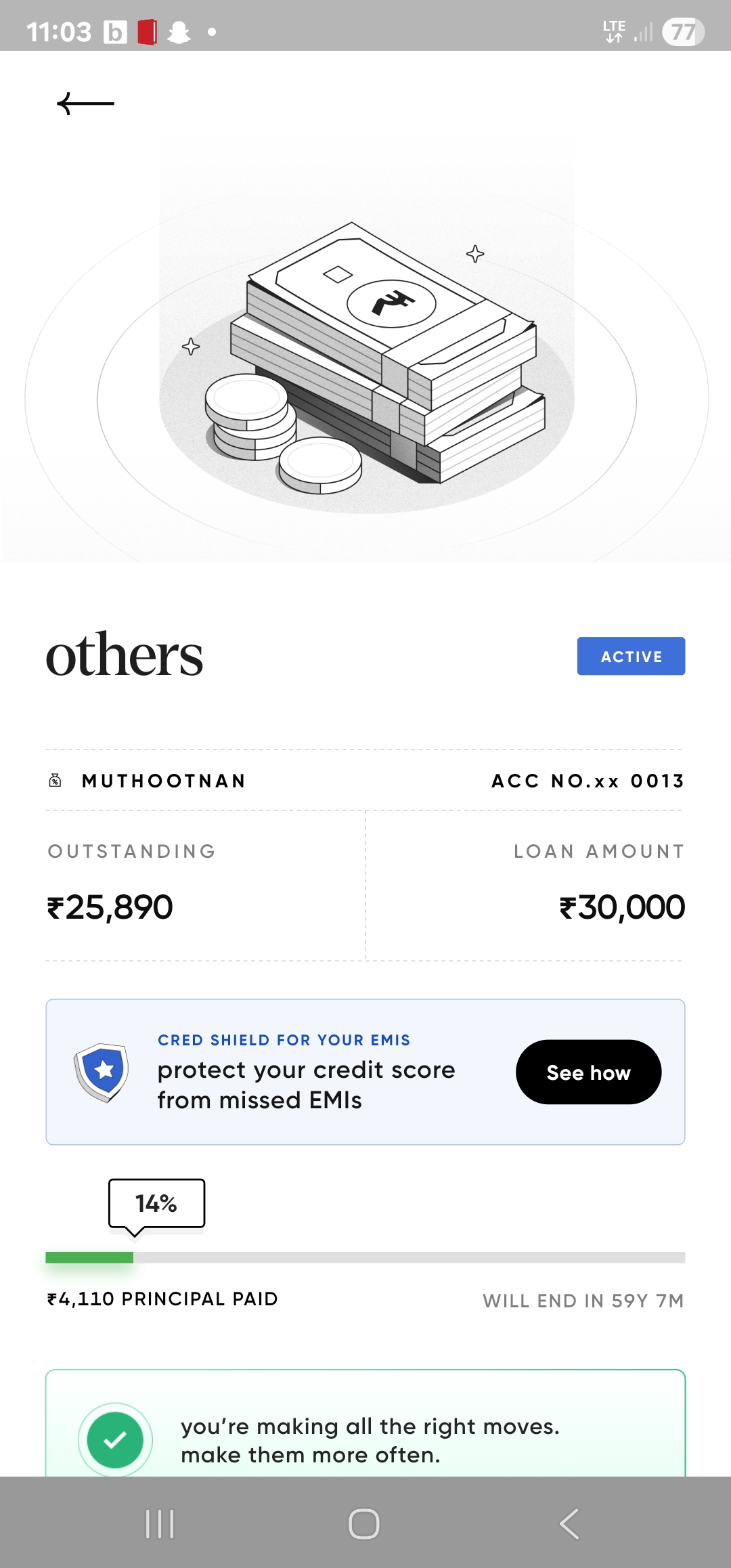 Muthootnan laon 30000 pls my close your loan my cbile scorr dwon