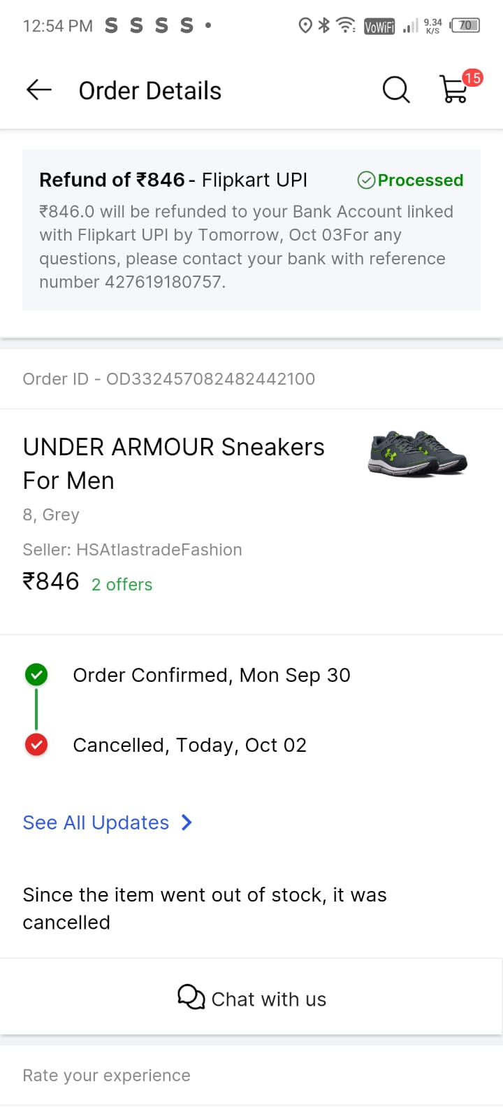 FLIPKART SE SHOES ORDER KIYE THE 30 SEP -2024 KO OR 2 OCT-2024 KO ORDER CANCEL KR DIYA GYA FLIPKART KI OR SE BINA KOI CONSULT KE