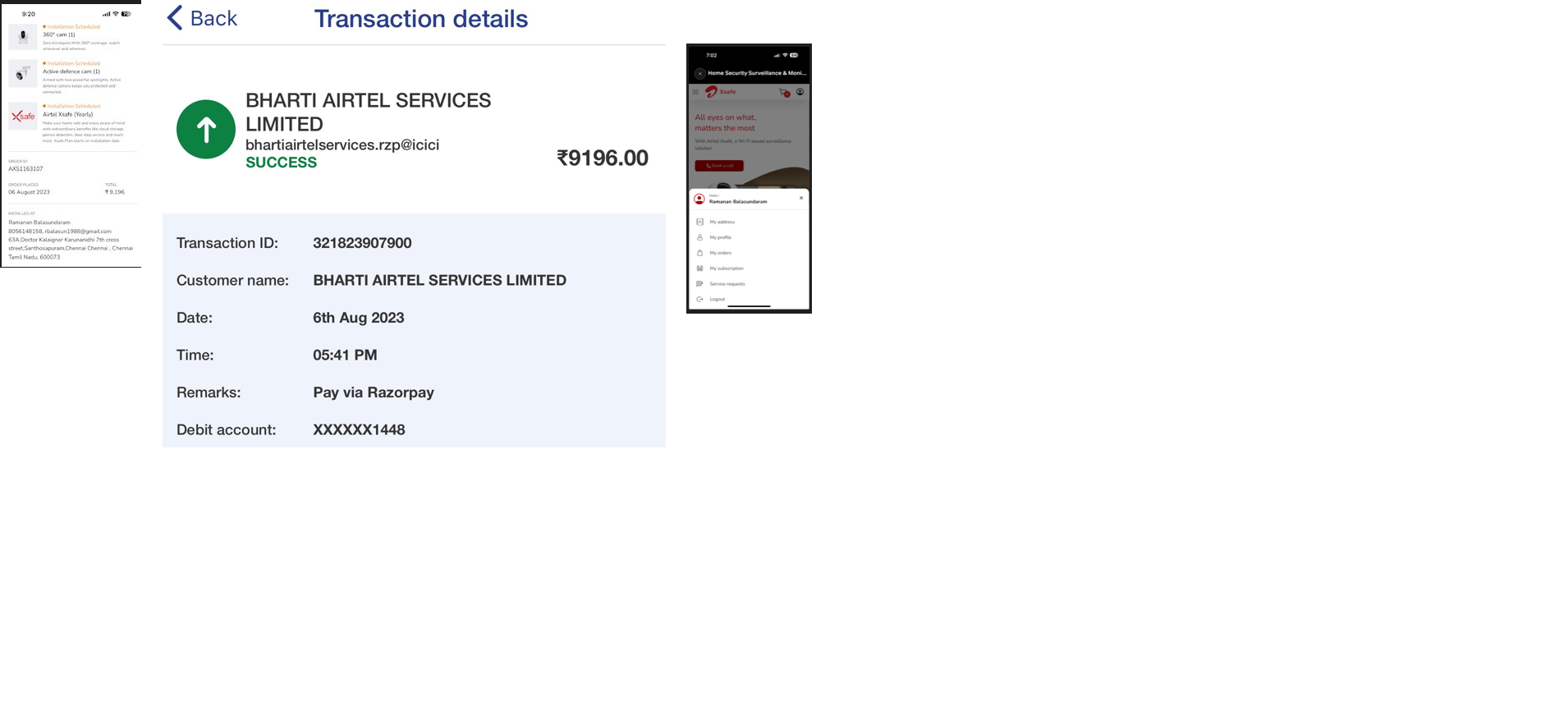 Purchased Airtel defence cam and 360 deg indoor cam on 06-Aug-2023 after customer care person promised installation on Monday .After raising installation request when i contacted service engineer they said Cameras are not in Stock and it might take more than a week for the cameras to arrive so decided to cancel the order and place cancellation (Cancellation ID: 86654755).There was no update after the cancellation initiated when i enquired through their customer care response was sloppy. Would like to get my amount refunded