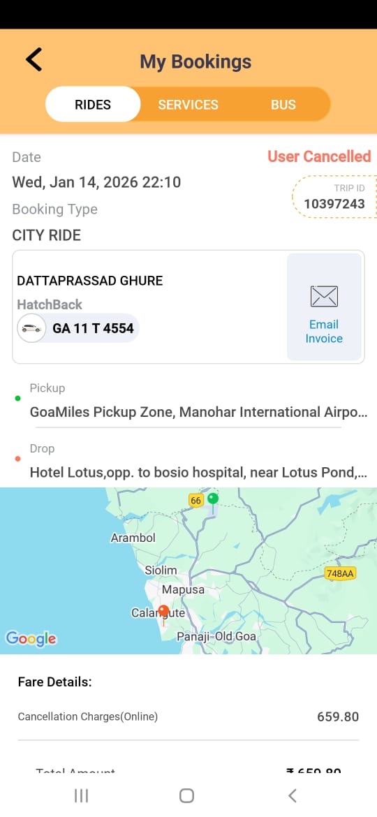 i had booked a prepaid cab in advance, my flight got delayed by 20 min, upon arrival i came to know my booking was canceled and i was levied 650 cancelation charges, i was ready to pay waiting charges if cab driver would have waited, but it was canceled by driver and I had to bare cancelation charges which is not fair.Trip id : 10397243