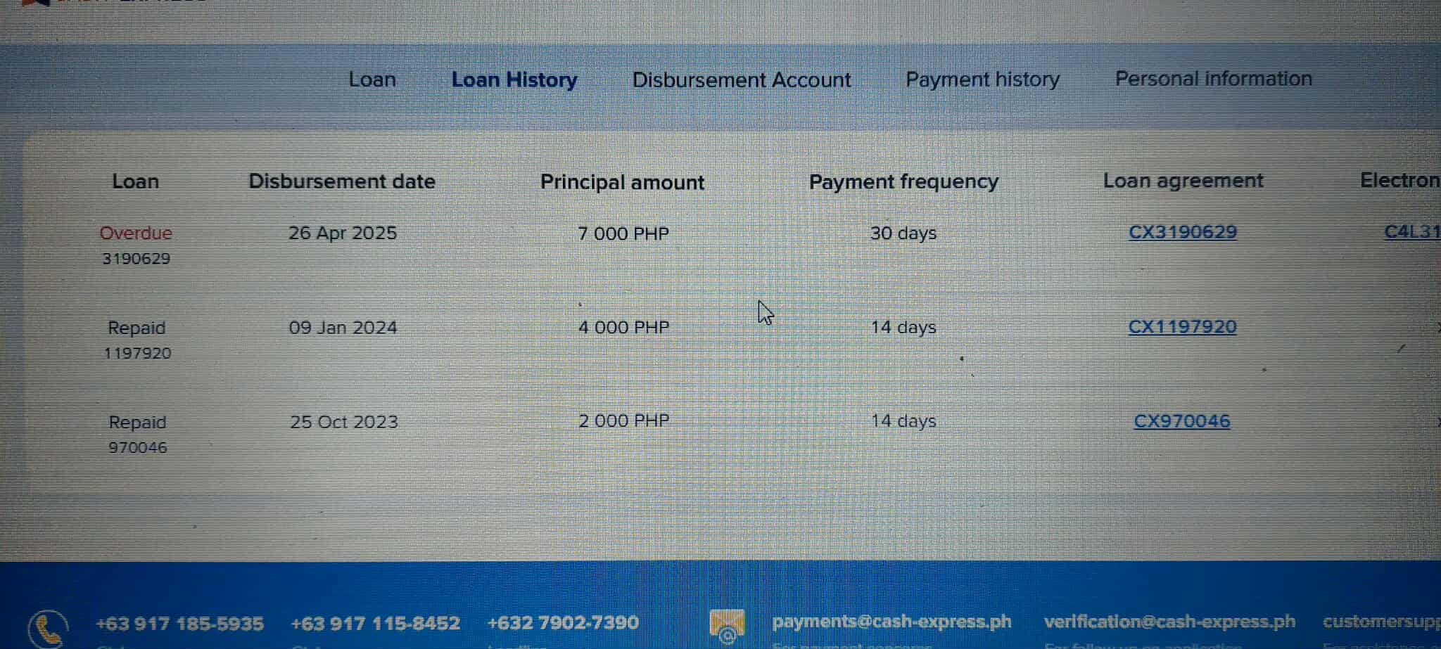 I made a loan to cash=express with 7000. minus the fees reimburse to only 6000, after a month paid them 5,052 , due financial situation i can pay it in full, so paid again the required 3,750 then for this month asking for full payment of 8,743.2 php or recommeded amount of 5,876 php, there interest rate and penalty is way beyound what the central bank of the philippines required. they should be stop victimizing other people, instead of helping theyn are drowning the lender in more outragious penalty and interest rate.