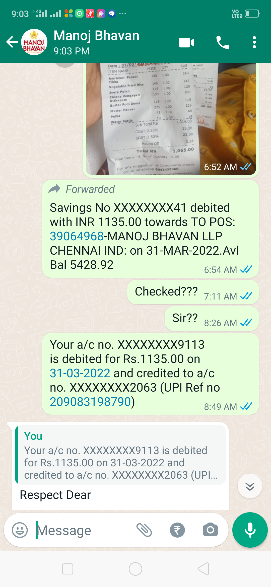 Hello sir, we had dinner at yesterday night we got bill amount 1135, wrongly we made two payments,but the did not refund my money