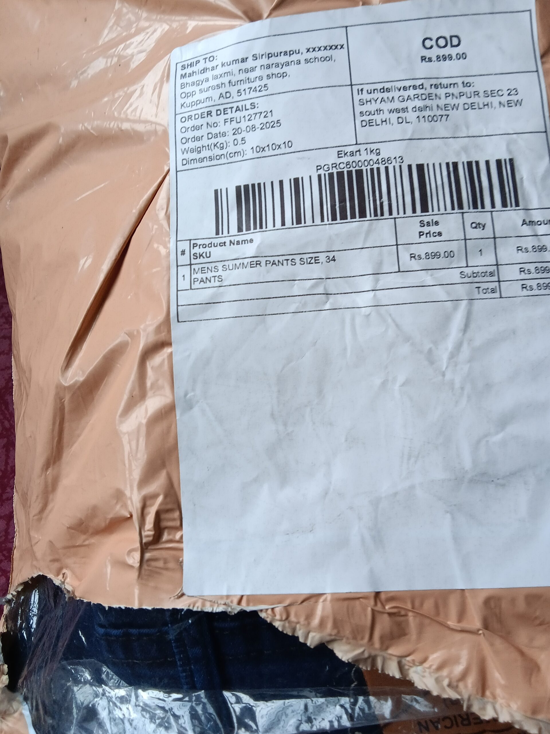 have ordered cargo jeans with offer buy 1 get 1 cargo jeans at rs 899/- but they delivered 1 blue used jeans pant instead of shirts.After that site wan not open,packaging was from ekart.