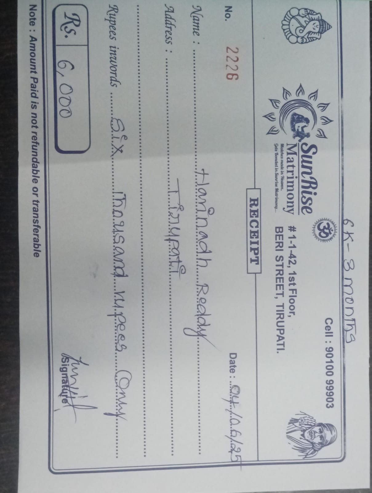 My name is Harinath Reddy, Sunrise matrimony contacted me for match making. They collected money and they are not responding now.