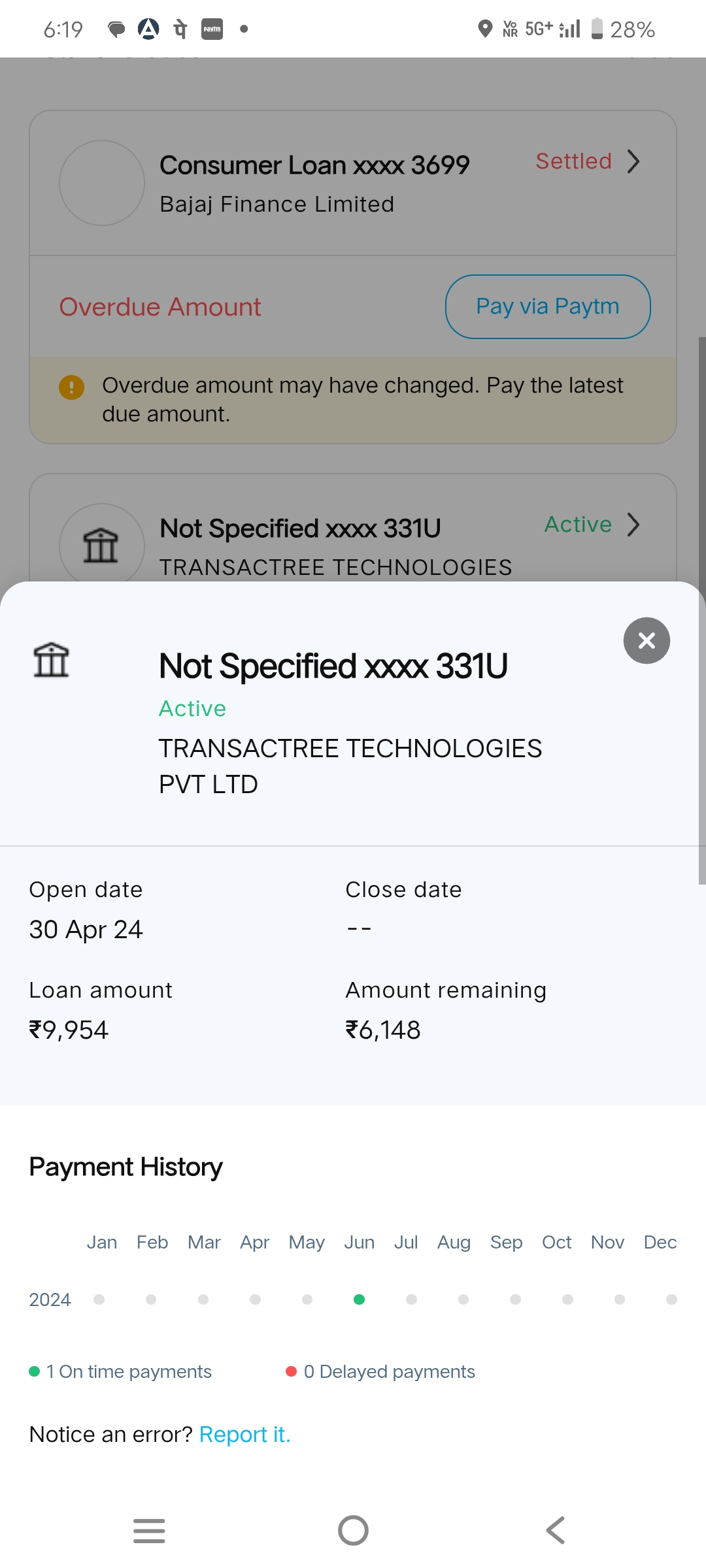 My cibil score report shows that the loan of this company is active, but I have not taken any loan. Appropriate action should be taken against this company.