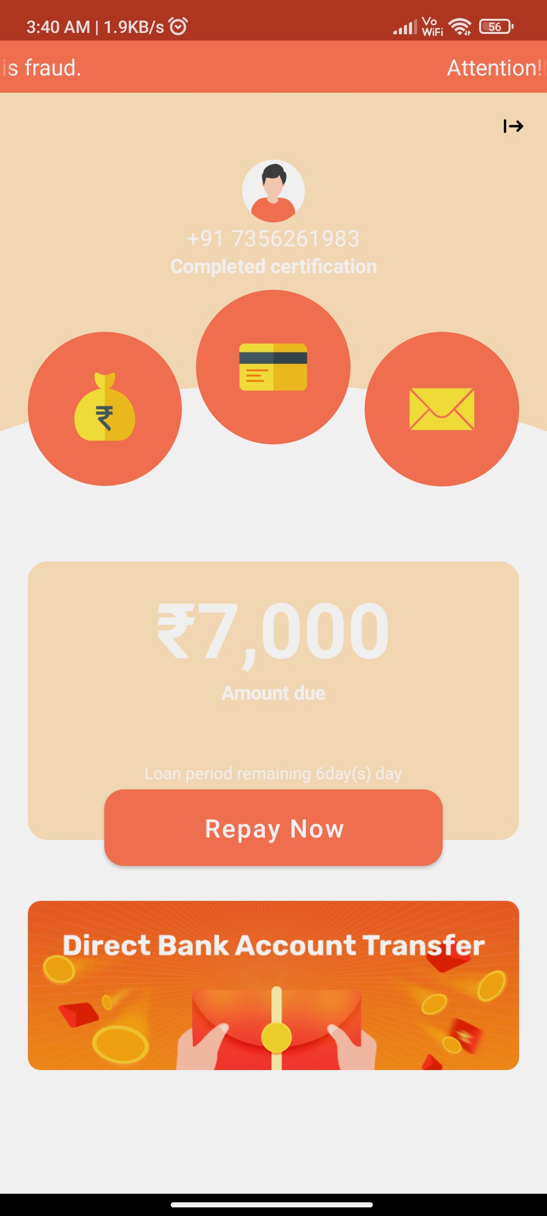 I have installed this to check how much money i will get then infound of the comments in Play Store Soni have not applied from the app but suddenly they disbursement the amount of 3780 .Then the app show to pay 7000