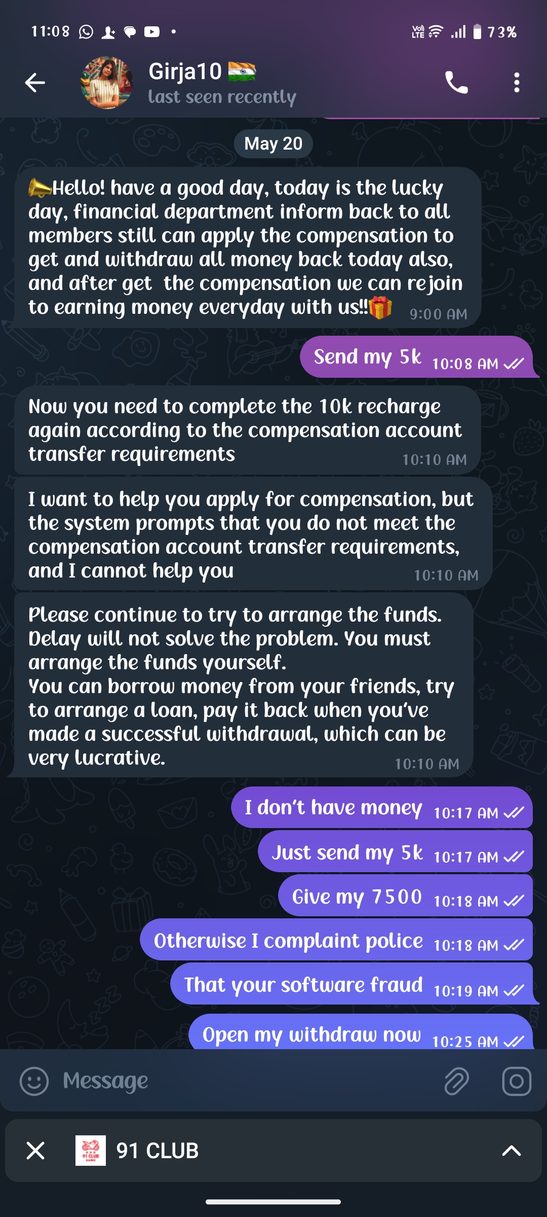 I show a link in facebook then I tap this they show if I invest 1k they return me 3088 then they said now I recharge 2k because 1k software shut down so I need 2k to i apply for 3k software they give me 7k and 3k =10k then they said I wait for 6day when the 6day come then I withdraw my all money now yesterday they said give 15k then withdraw all money and 5k I give it to them first they said give 5k and withdraw all your money now they said you give more 10k then you withdraw all you money I pay from famapp not for bank what I do now