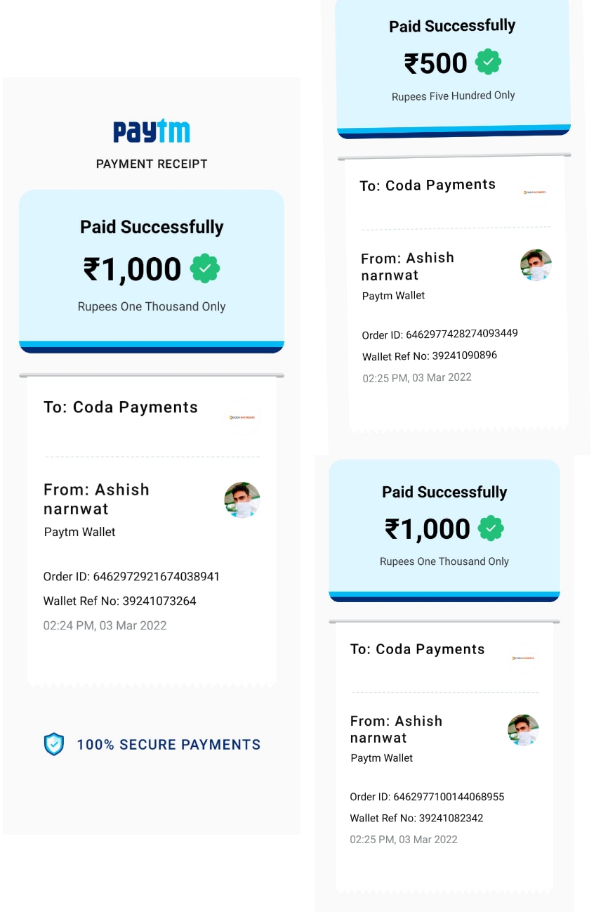 2500 money is debited automatically from my Paytm wallet to coda payments in three transaction (500,1000,1000)