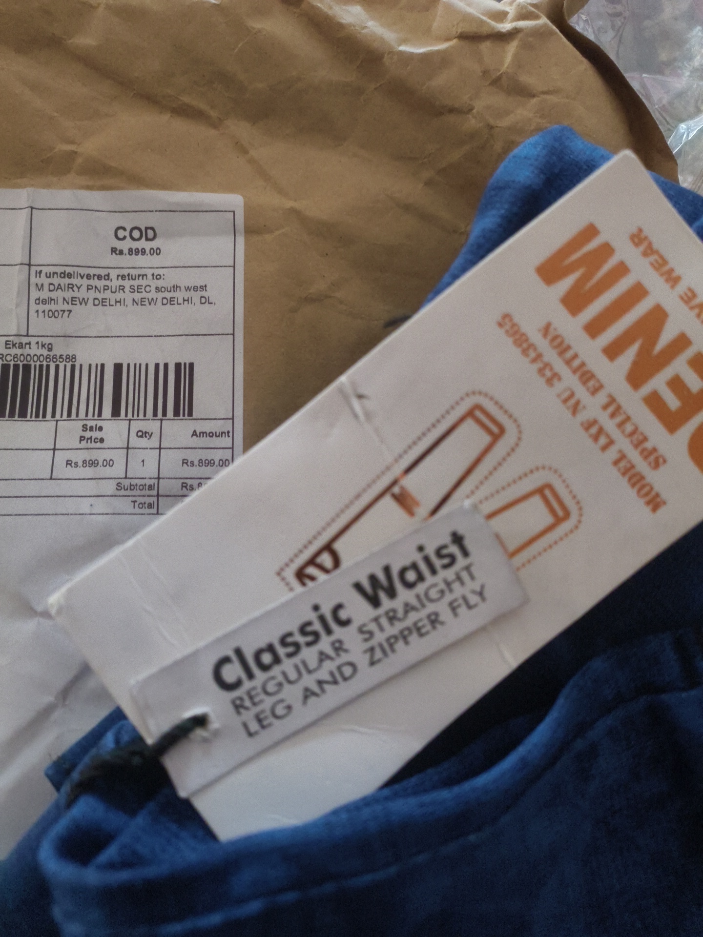 I have ordered a pair of cargo from an ad reflecting online, which costs 900 rs after ordering i havent got any detail of shipping and any other information, today 22 oct 2025 i got a text from ekart and on delivery i paid 900 rs