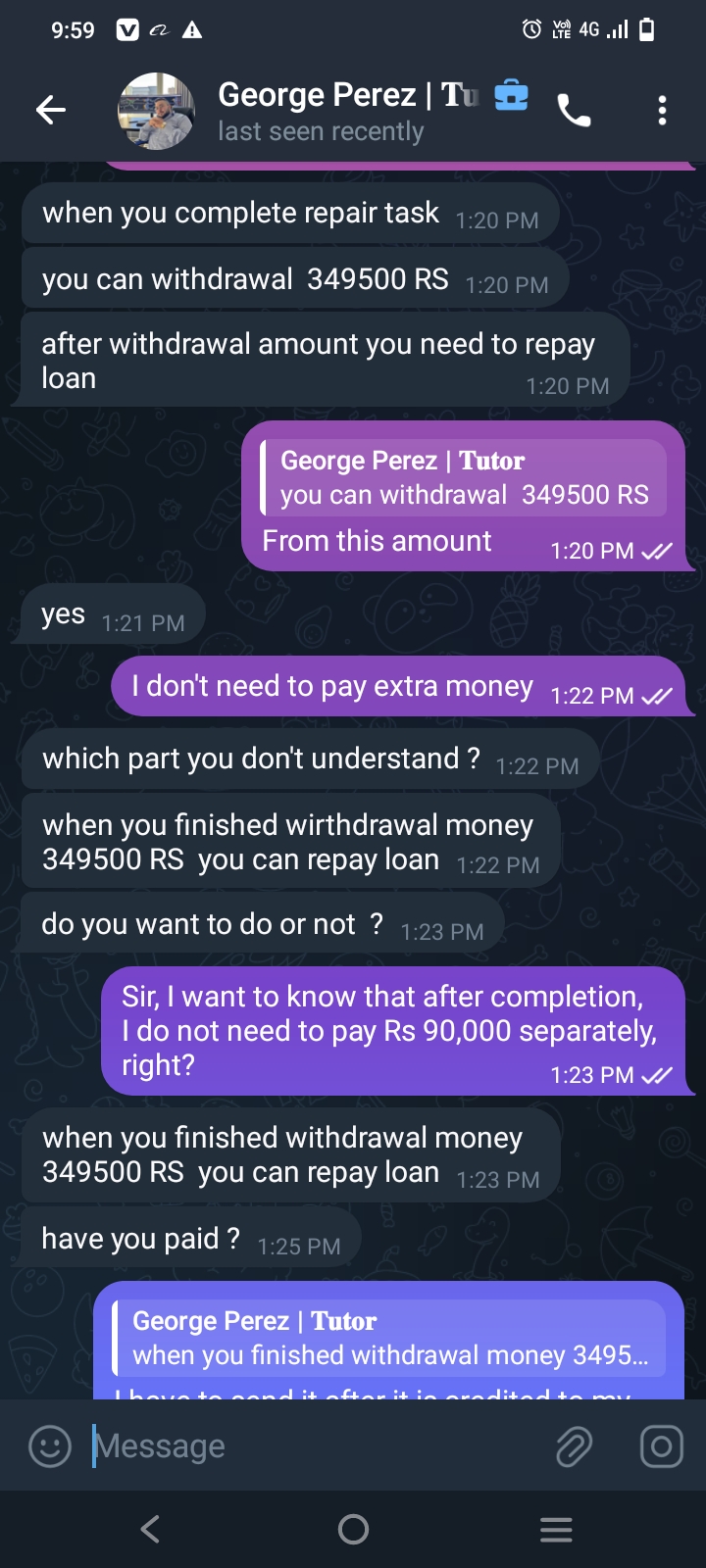 A person massage me and told me about online work and send me a link then he told invest 1000 you’ll get 1500 then I invested then I’ll got 1500 then day by day i invested more and More then he told me invest 50000 after invested he told me, you have to deposit 50000 more then you’ll get 300000 and i invested 1lakh but he didn’t deposit 300000 in my account