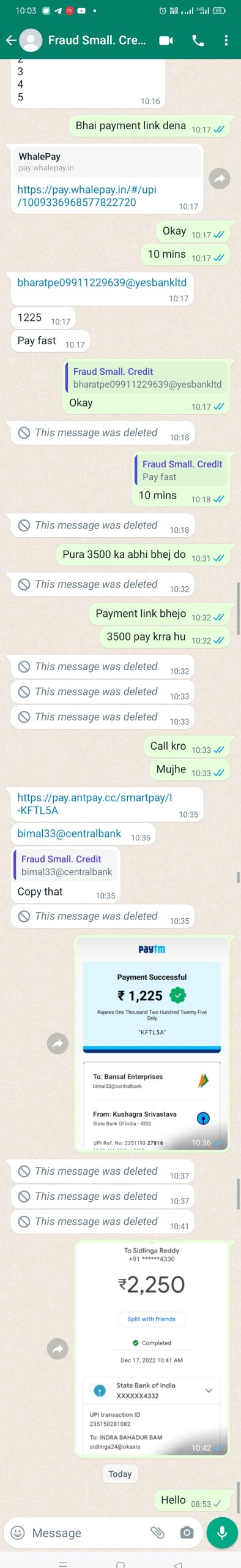 After 6 days on Dec 24, 22 I again start getting calls from them asking for full payment of 3500 for same loan amount, upon enquiring they said they have only received 1225 which was the interest amt and never got 2250.