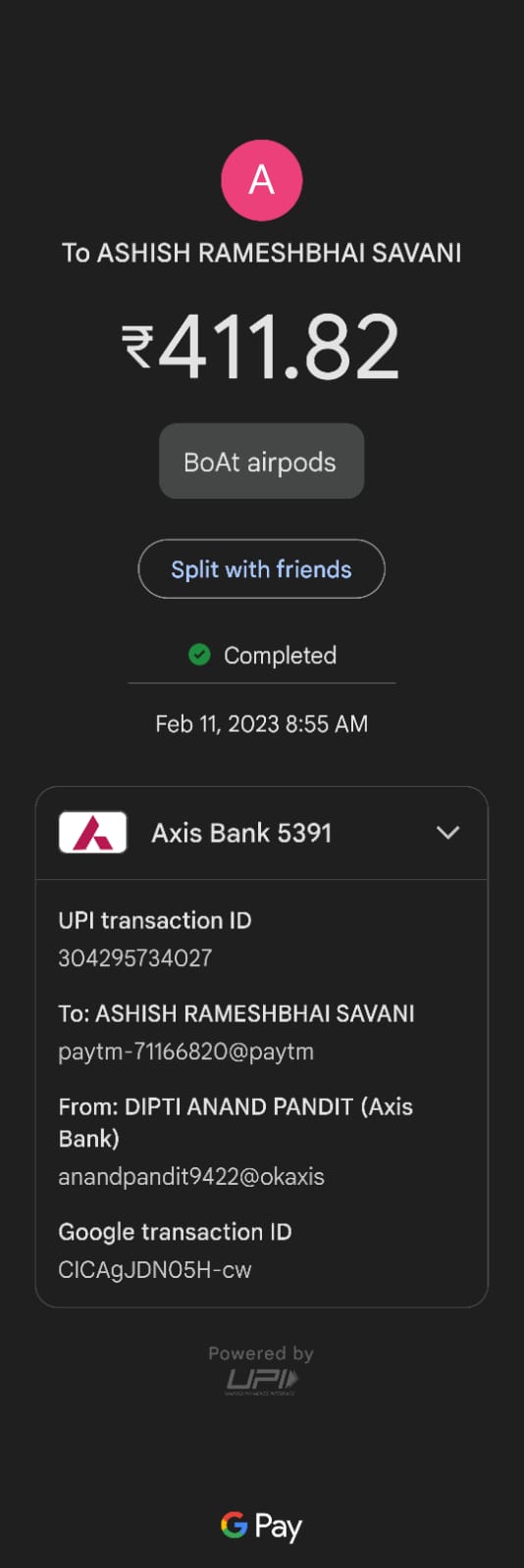 I saw an advertisement while using YouTube and clicked the link, directed to the page like Boat product store. The store show us various smart watch , ear buds and many more electronics device at cheap. I , suddenly purchased One Bluetooth head phones @411.82 by paying through Gpay (Rs 411.52 debited from My Bank Account and credited to paytm-71166820@paytm UPI Ref:304295734027. But still I don’t get my products and any order confirmation. So I went to this site , site shows unavailable. Please take a necessary action against Asish Rameshbhai Savani who cheated on me . Documents attached for your reference