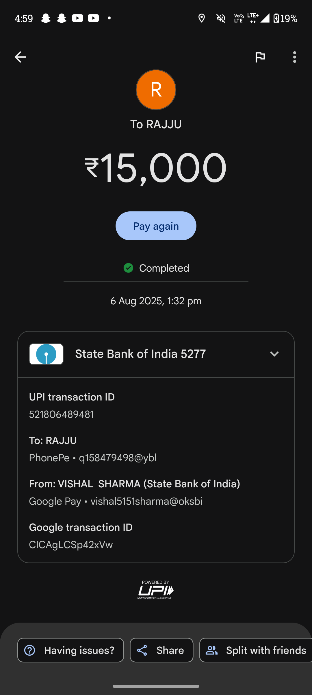 I am attaching screenshot of the transaction.