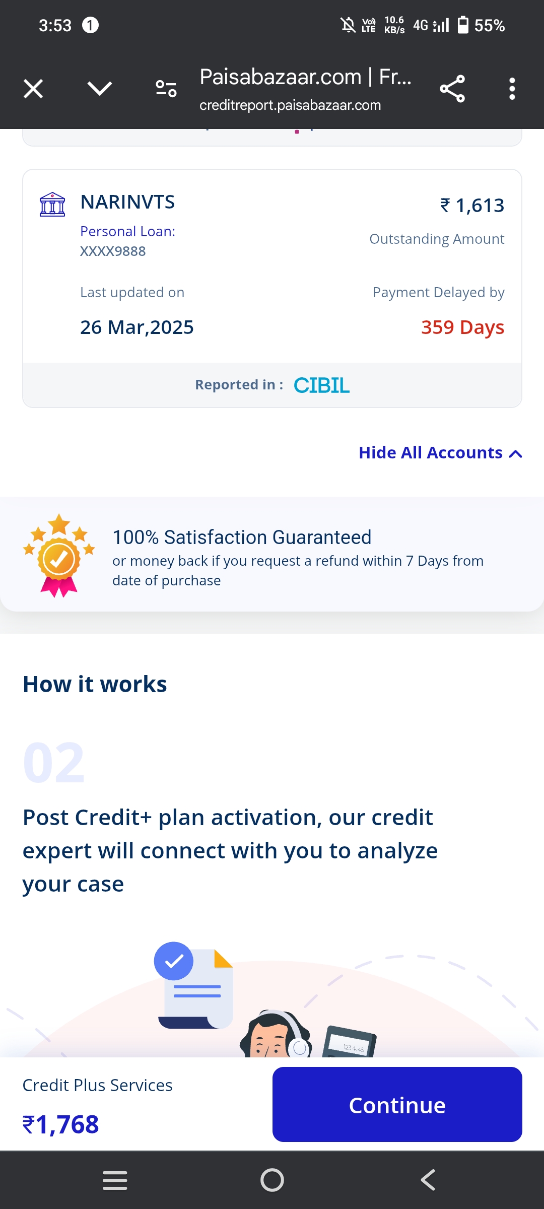 I have not taken loan or pending loan against the company Narinvts ..but my cibil report show some due is pending.. please fill my complaint and rectify my problem in my account