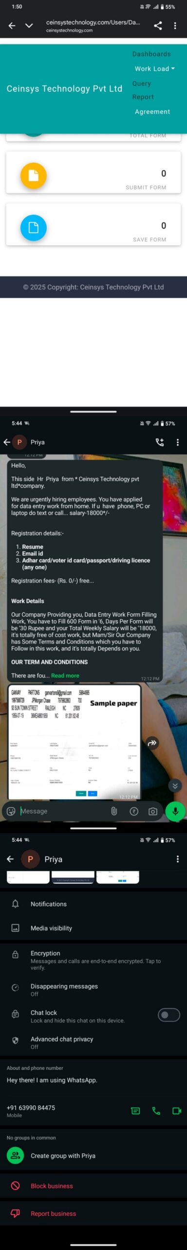 1. The company offered me online data entry work with the promise of paying ₹30 per form. The target was 600 forms per week, which amounts to ₹18,000 per week.
