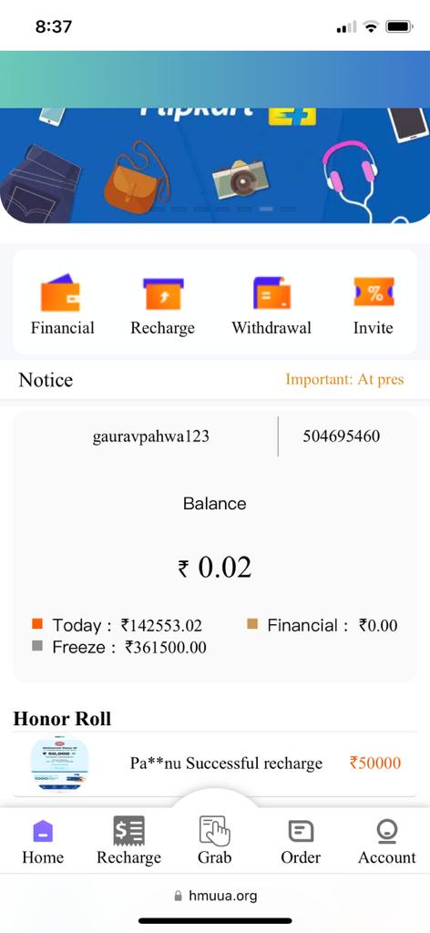 A message was sent for an online part-time job to me on my WhatsApp. An initial investment of 500 and as the task was completed with a grab option from their website, where products were showing to grab a deal, they allowed me to withdraw with my commission of 490/- and total 1300/- withdrawal and they gained confidence.