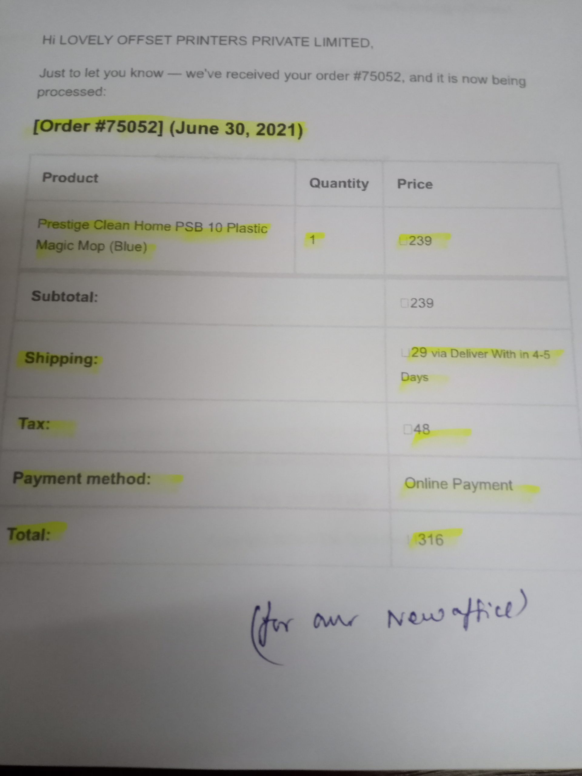 Sir, I had ordered (Order No.75052 dt.30.06.2021) Prestige Clean Home PSB 10 Plastic Magic Mop and paid Rs.316 online – by TMB Debit Card thro TMB, but not received the product till date. I feel cheated by Pasfar Technologies Private Limited & thequickshop. May be this company is a fraud company. Please do the needful and kindly help for refund – My TMB SB Account No.003100050006471 – IFS Code – TMBL0000003