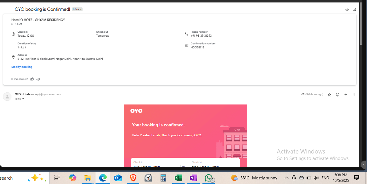 On 5th October 2025, I had a confirmed booking through OYO at Hotel O Shyam Residency (Shyam Hotel Residency).