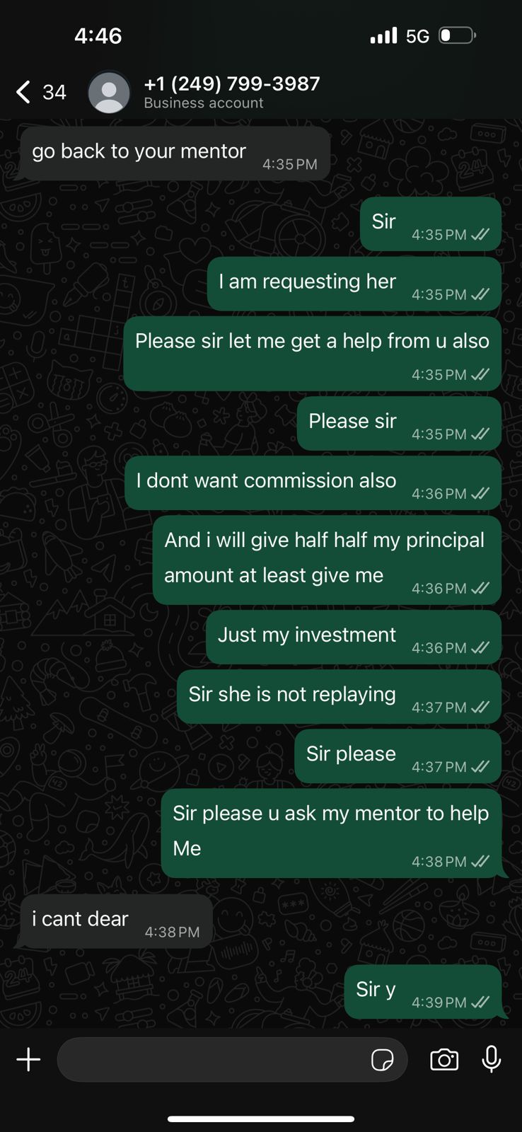On 10-12-2025, I was contacted through (WhatsApp/Telegram No.: +1 (249) 799-3987 by unknown persons offering part-time income by completing Amazon shopping tasks. I was directed to deposit money for completing “tasks,” with the promise of commissions and refunds. Initially, small profits were shown, after which higher payments were demanded to “unlock” the next task.