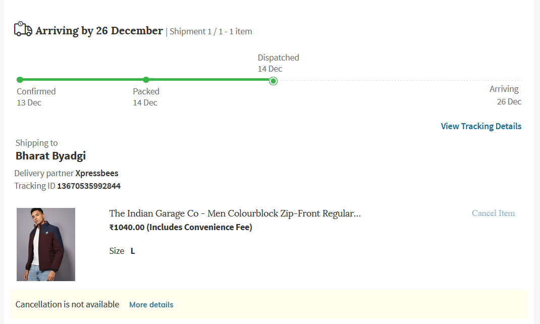 I placed an order on AJIO with the assurance of delivery within the initially promised timeline that is 17th Dec. However, the expected delivery date has been continuously shifted multiple times without any clear or valid explanation. As per the tracking details, the product has already reached a nearby city hub which is davanagere, but it has neither been dispatched to my city( Ranebennur) nor delivered to my address, even after several days.