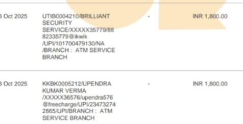 On 13th October 2025, two amounts of ₹1,800 each were credited to my bank account without any prior request, consent, or knowledge on my part.