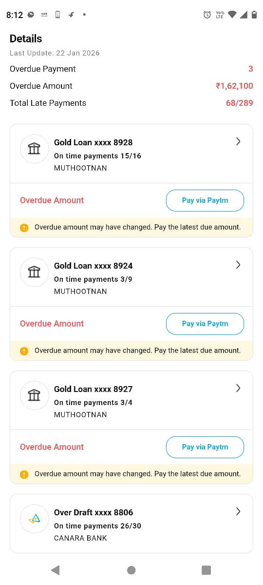 Due to this incorrect reporting, my CIBIL score has significantly reduced and my bank loan processing has been adversely affected, causing financial hardship and mental distress.