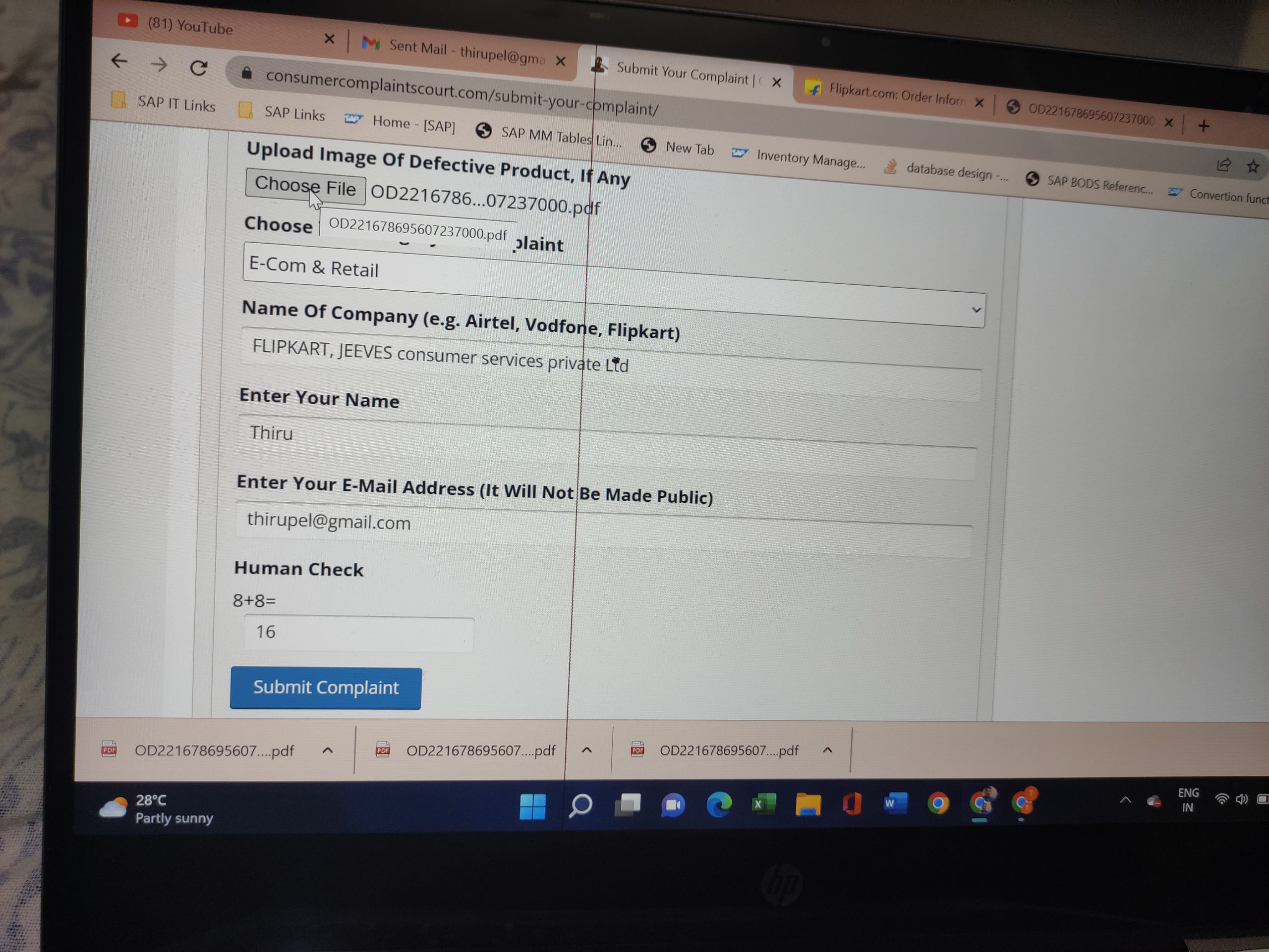Actual Damages: 1. Laptop cost: INR 58,990 Order ID: OD221678695607237000 bought on Flipkart