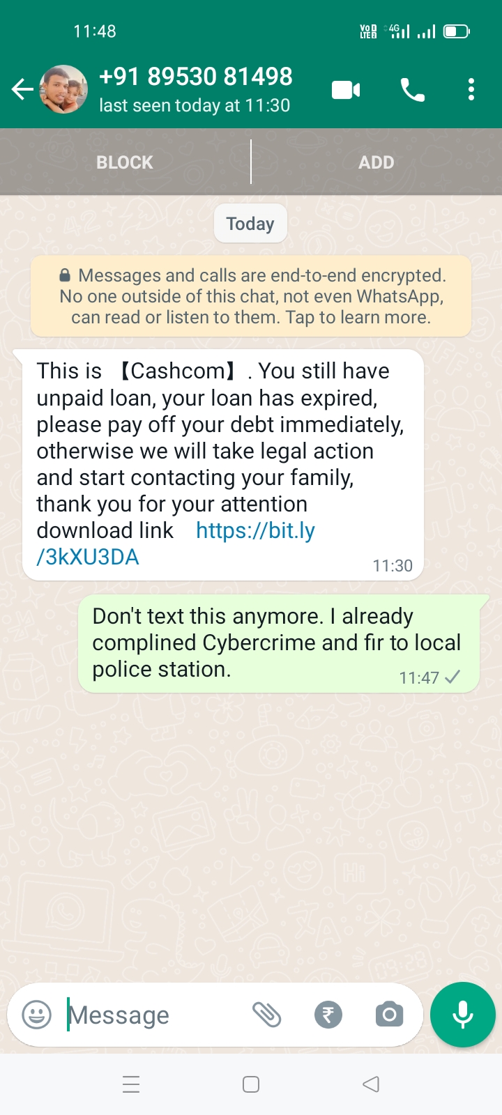 Cashcom Apps Send me continuous text to claim loan refund. Please take necessary action. It’s Cybercrime to collect documents by anywhere and push us this message m