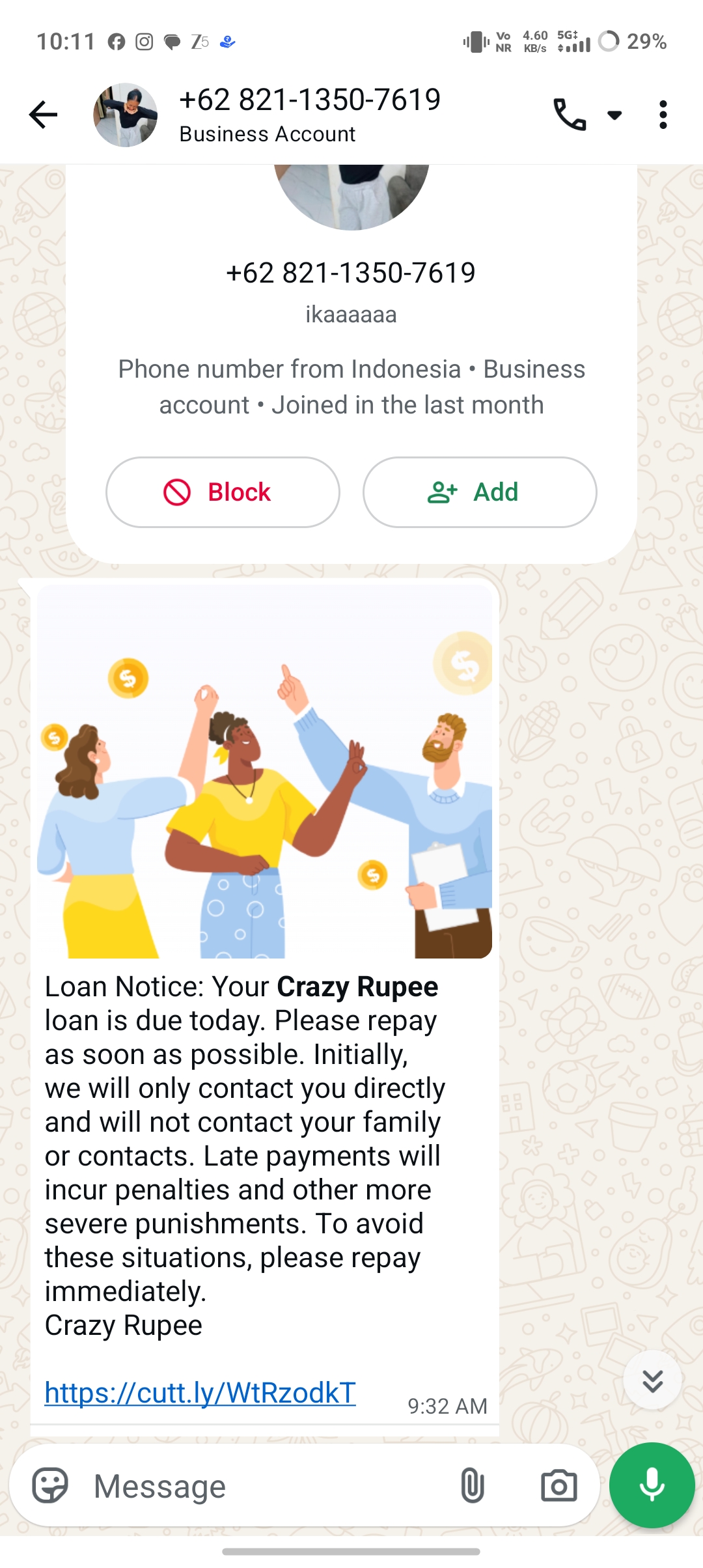 I haven’t taken any loan from this site but still they sending me message in WhatsApp to repay my loan they’re doing scam