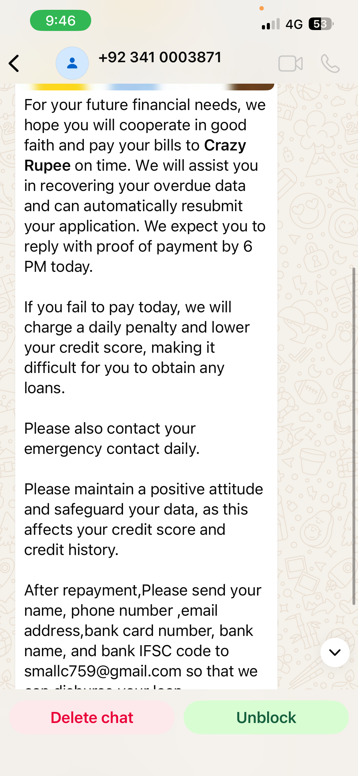 I had not taken any loan from crazy rupee but they are sending me loan repayment msg from last 2 days and number is from Pakistan it’s totally fake