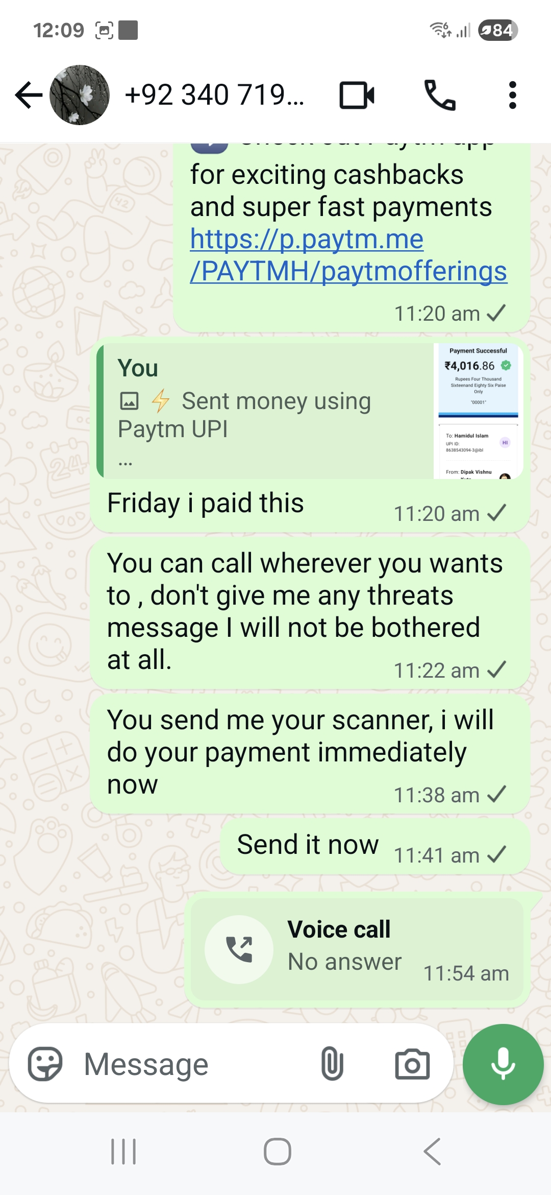 sir i had filled my information google while searching for loan and one app named CredHisab they quickly transferred to my account the money amount of 3300 + 2400= 5700 total without my consent and now after 6 days they are asking me total about 9000 rs as it was also not informed to me, i am following with them from the time i received money. Now the app is automatically deleted from my app and also i cannot find any app there. Second i am getting threat messages from someone named easyrupee loan app and from some fake online whatsapp number and threatening me to contact my family. His number i can see is +923407194523