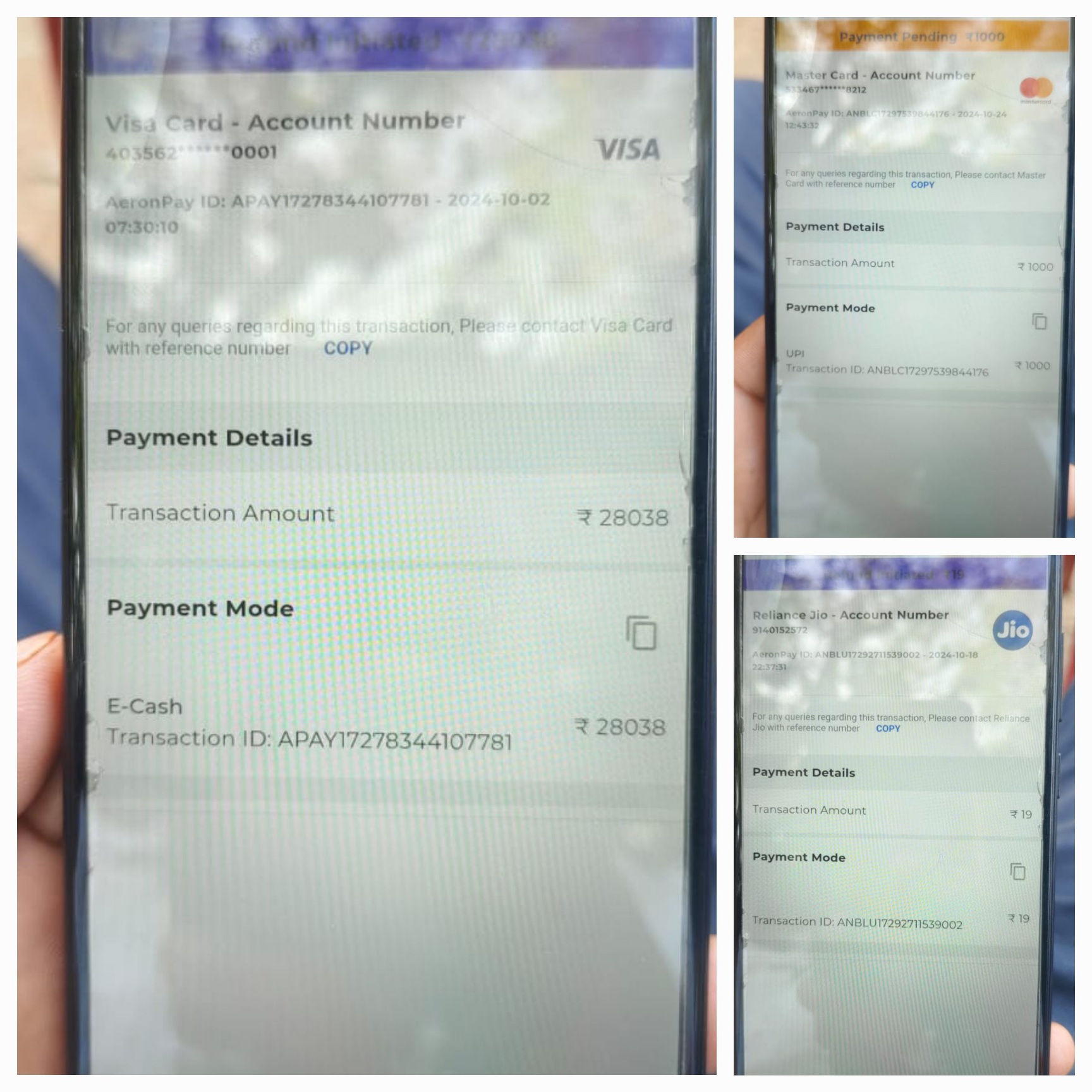मैने अपने क्रेडिट कार्ड का पेमेंट ऐरोंन पे ऐप से 14 और 15 मई 2024 को किया था कुल 28000 +1000+19 रुपये का जो मेरे क्रेडिट कार्ड मे अपडेट हुआ । और एक महीने बाद ऐरोंन पे ई कैश वॉलेट मे अपडेट हुआ ।