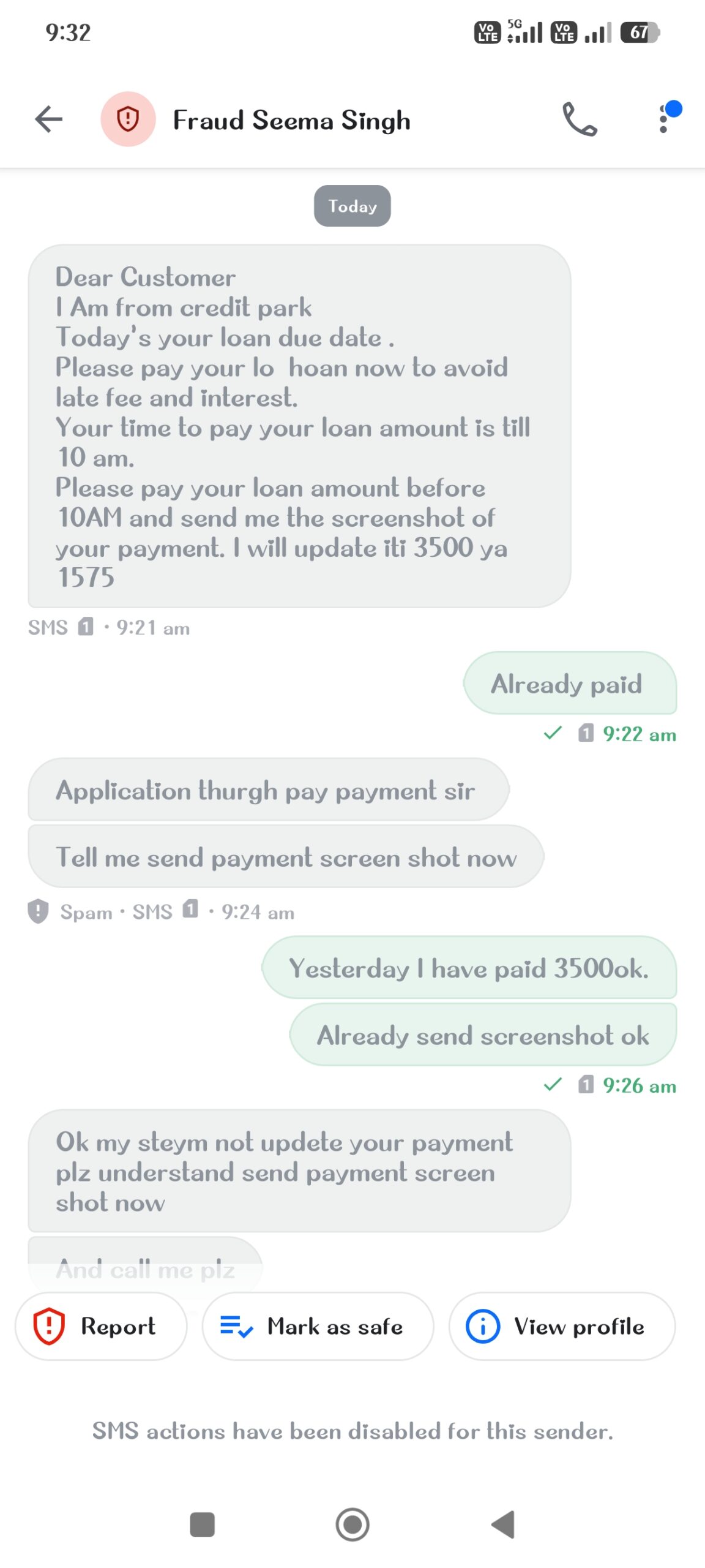 Some person send whatsapp and msg wrongly.he told send payment send payment otherwise contact list screenshot black mail.photo misused
