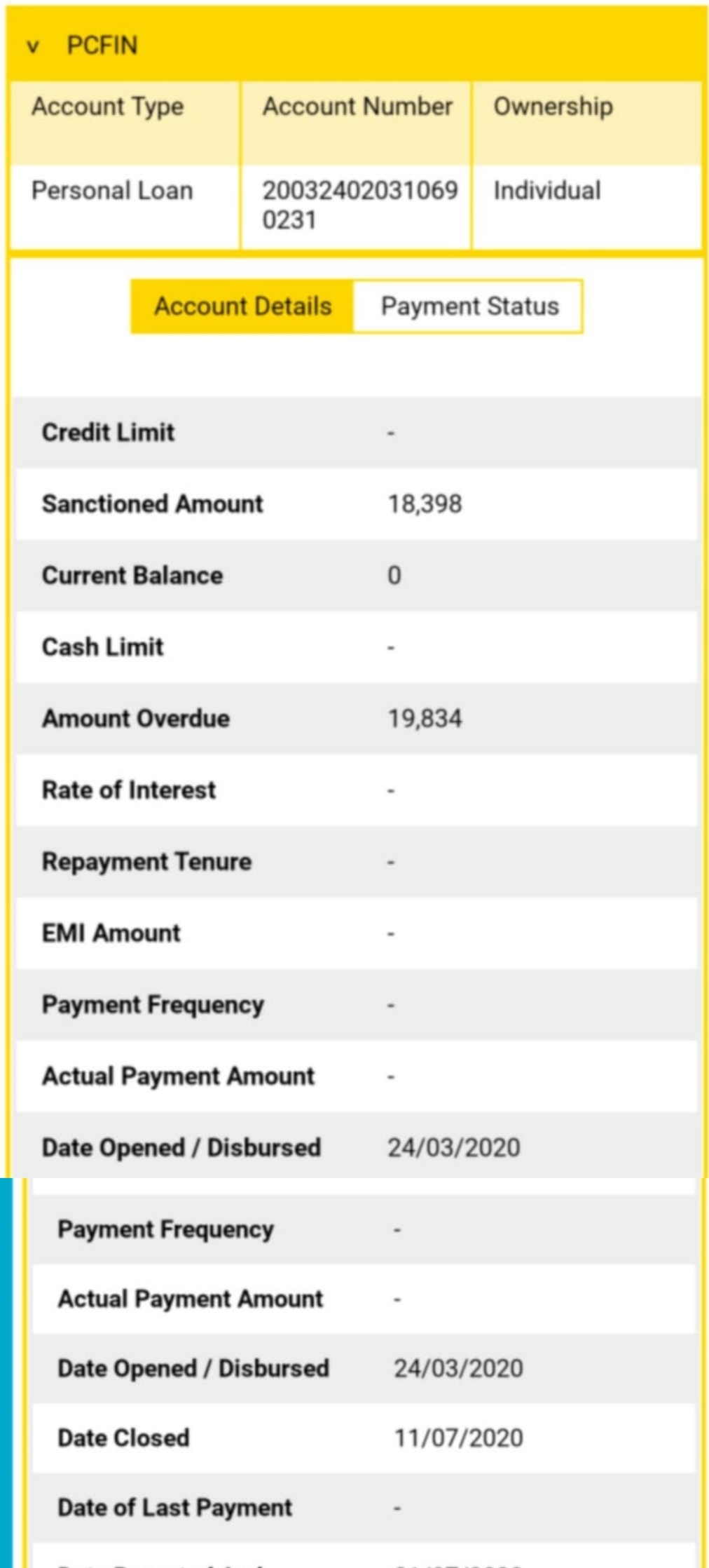 Cash bean से 24/03/2020 को 18,398 रुपये का लोन लिया था, लॉक डाउन की वजह से देरी से 11/07/2020 को सारा पेमेंट दे दिया था, cash bean की तरफ से लोन paid off का सर्टिफिकेट भी मिल चुका है, लेकिन CIBIL पर अभी भी 19,834 रुपये का पेमेंट overdue शो हो रहा है ,